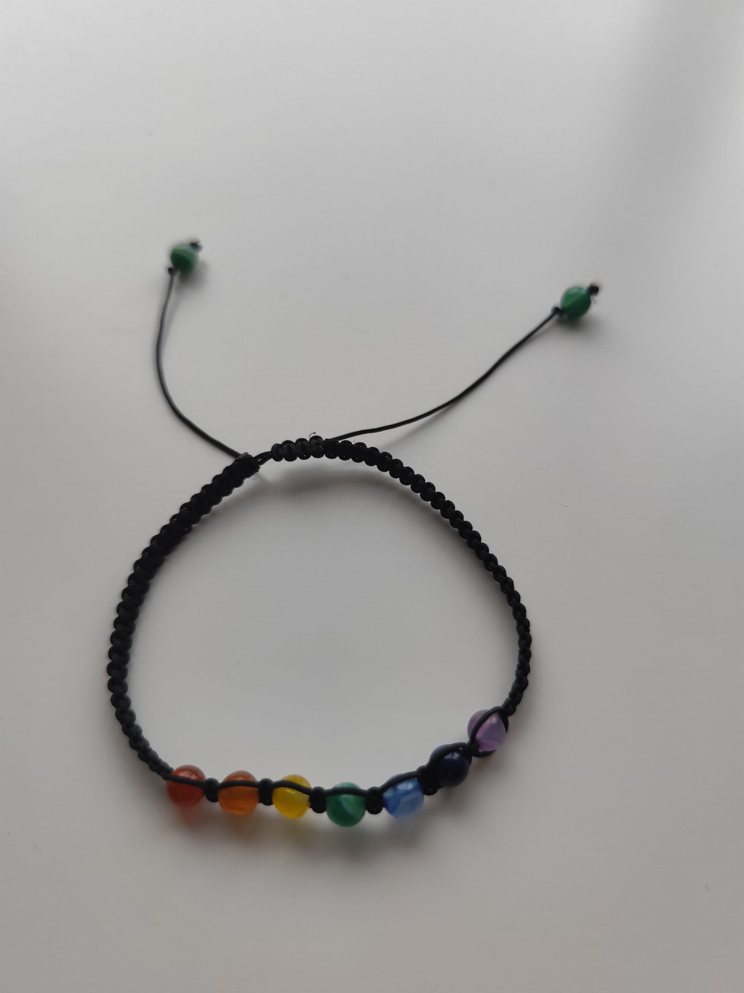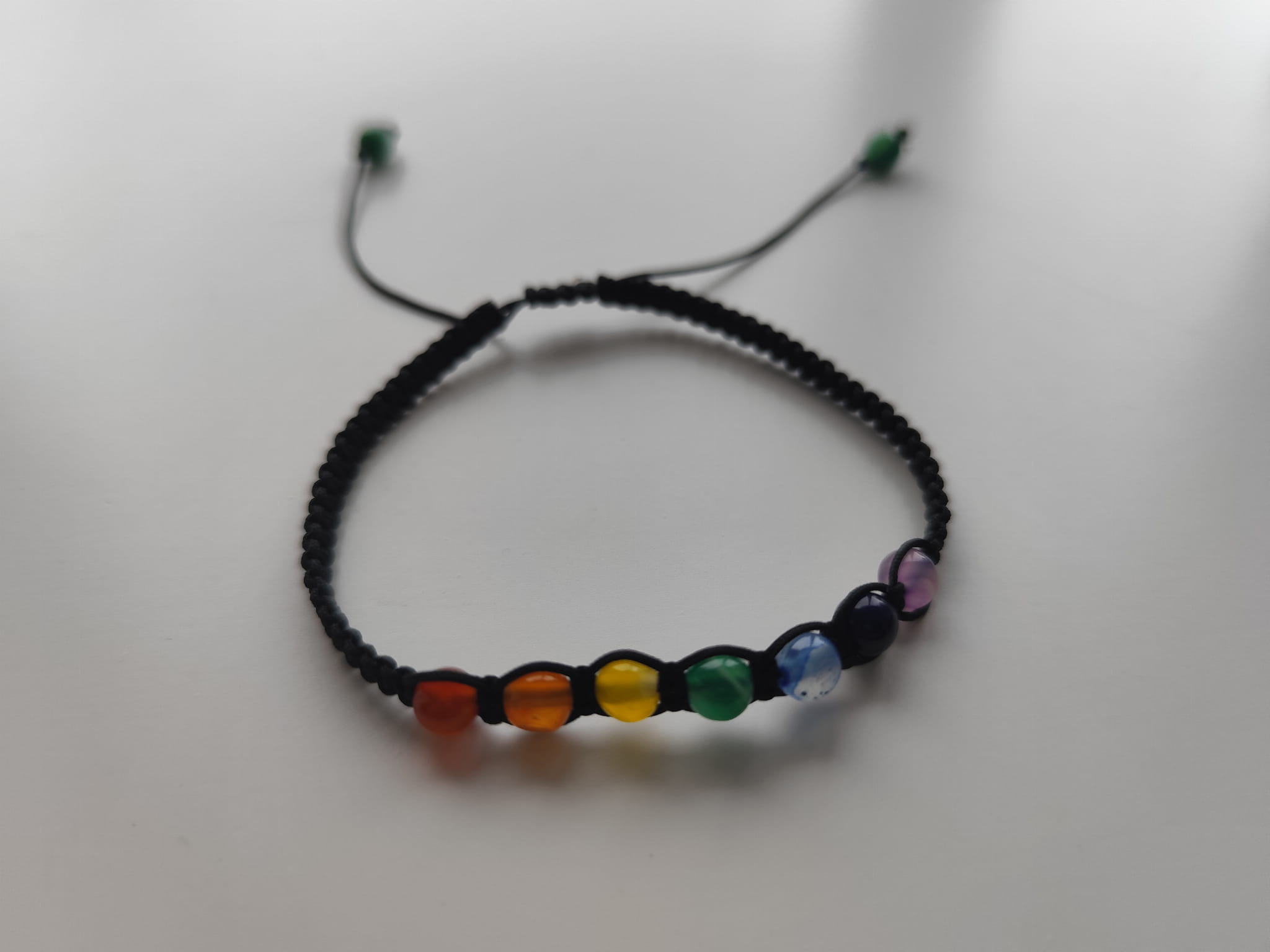 Bransoletka stworzona z naturalnych kamieni agatu w kolorach siedmiu czakr to połączenie symboliki, energii i elegancji. Osadzona na ciemnym, minimalistycznym sznurku, zachwyca swoją prostotą i głębią – zarówno wizualną, jak i duchową.