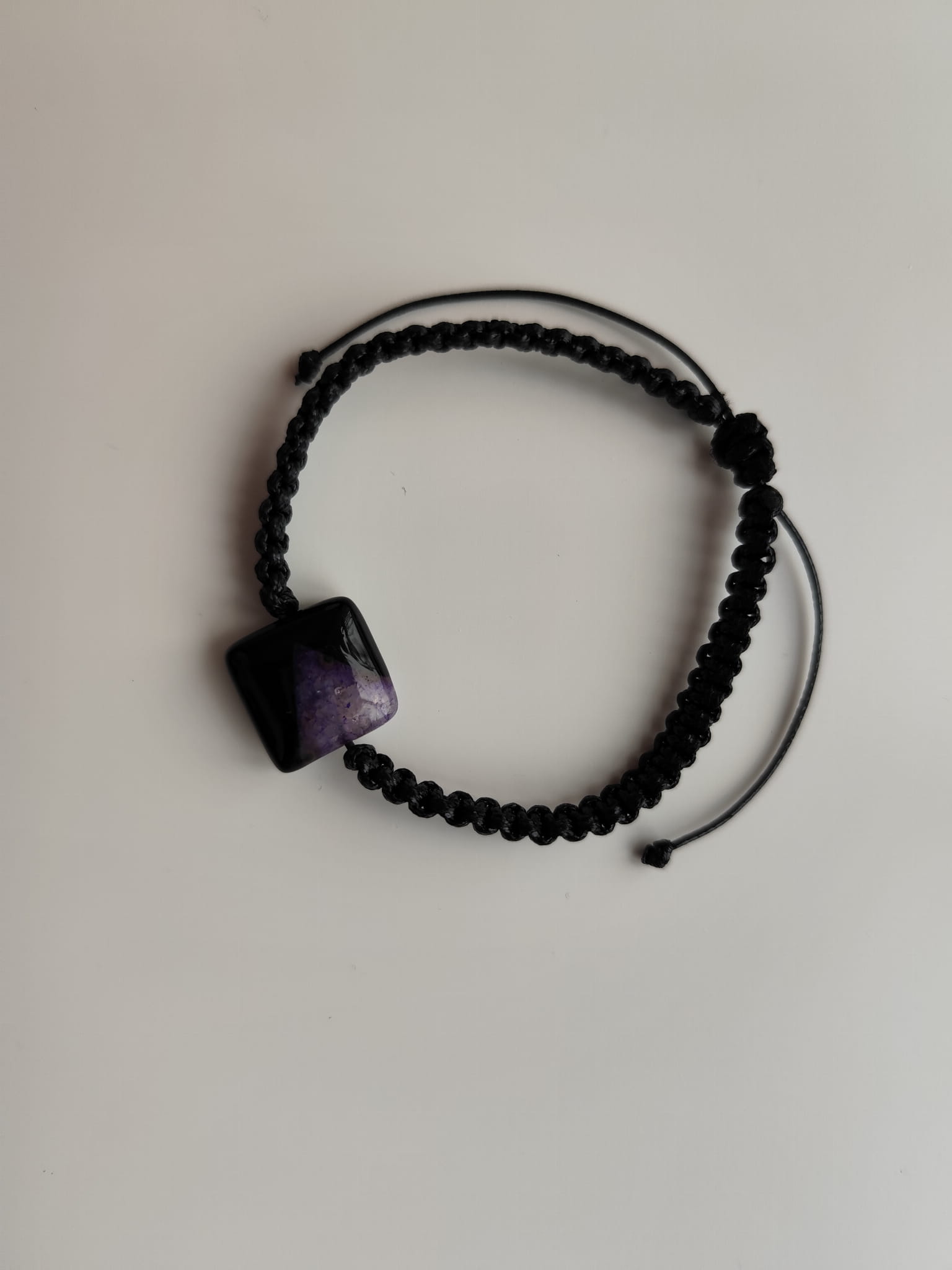 Delikatny, czarny sznurek stanowi elegancką oprawę dla kamienia, a jednocześnie zapewnia wygodę noszenia. Dzięki regulowanemu zapięciu, bransoletka dopasowuje się do nadgarstka, co sprawia, że pasuje zarówno na co dzień, jak i jako subtelny dodatek do bardziej formalnych stylizacji.