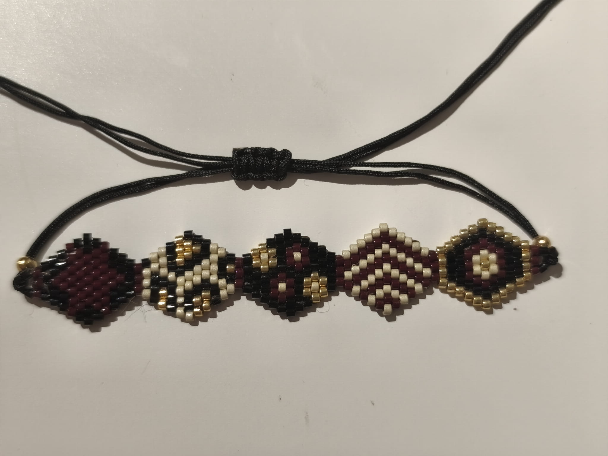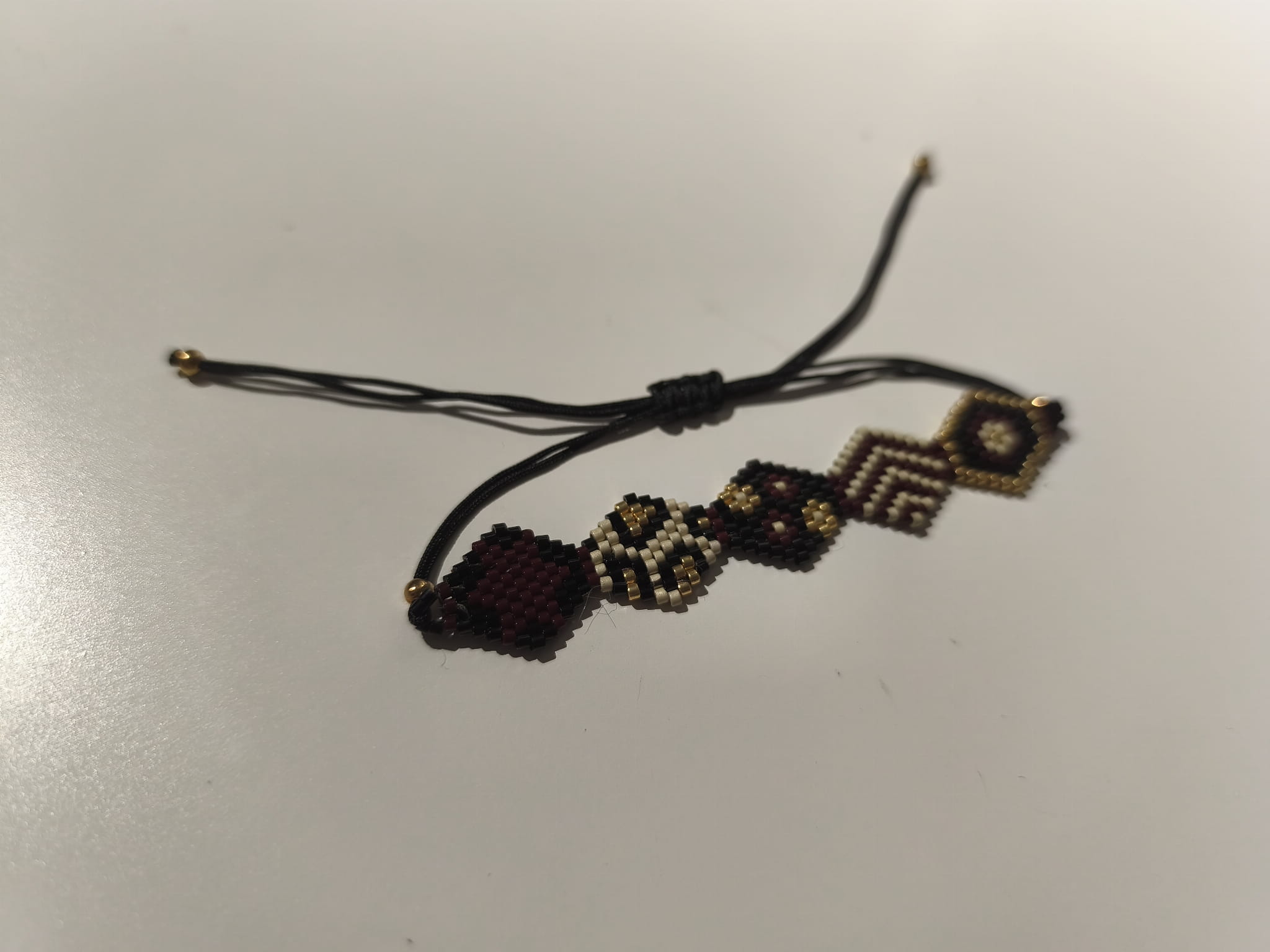 Ta wyjątkowa bransoletka została wykonana ręcznie z najwyższej jakości japońskich koralików MIYUKI, znanych ze swojej precyzji i pięknego połysku. Połączenie czerni, bieli, brązu i złota nadaje jej ponadczasowego charakteru – pasuje zarówno do stylizacji klasycznych, jak i nowoczesnych.