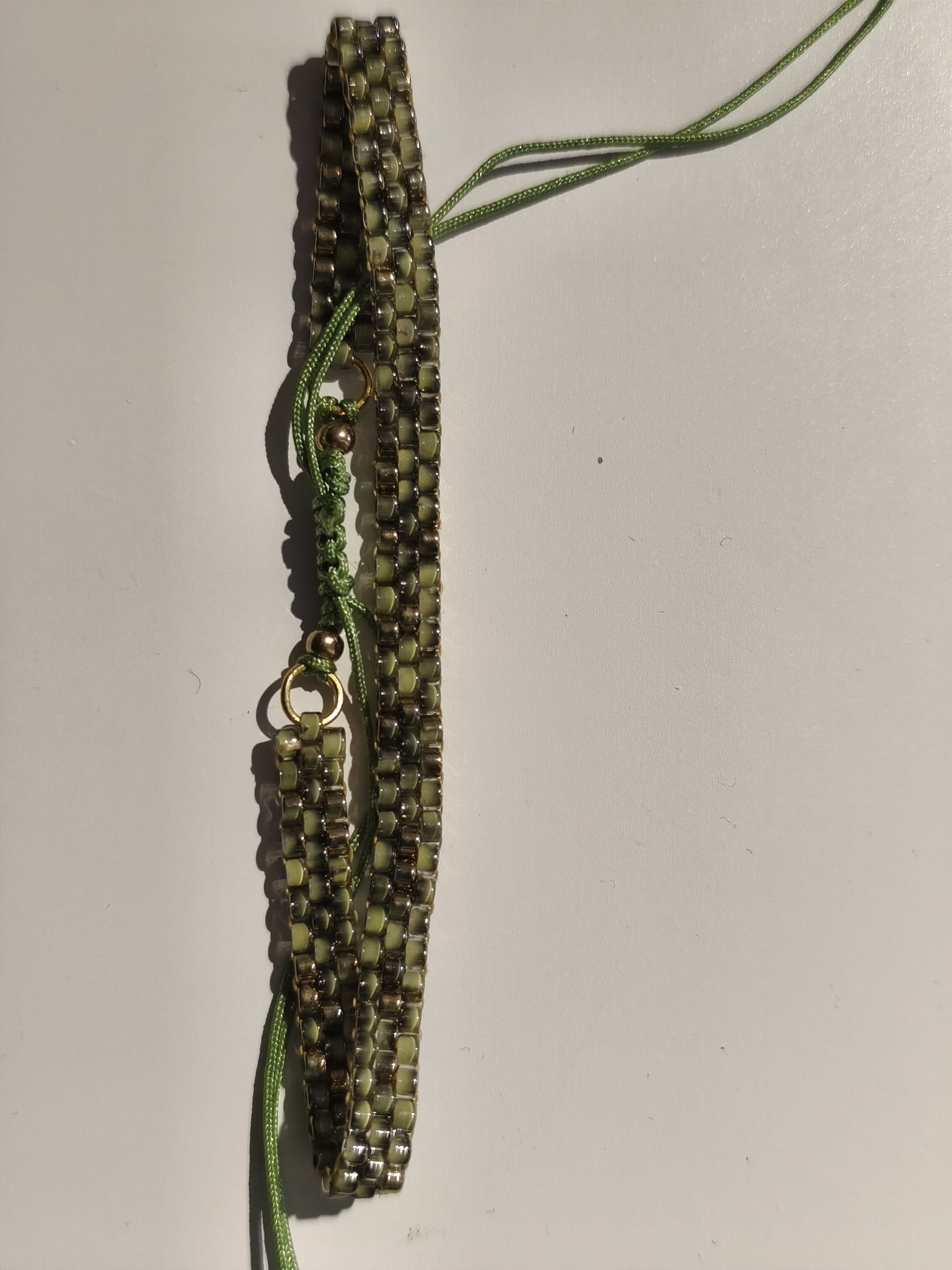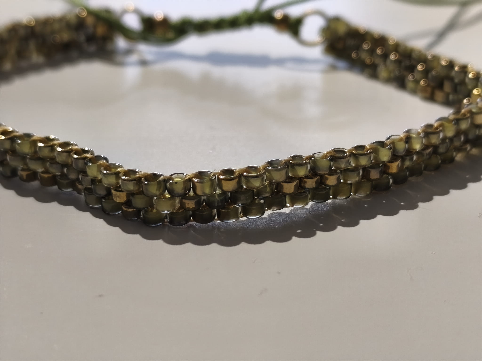 Koraliki TOHO w kolorach oliwki i złota.