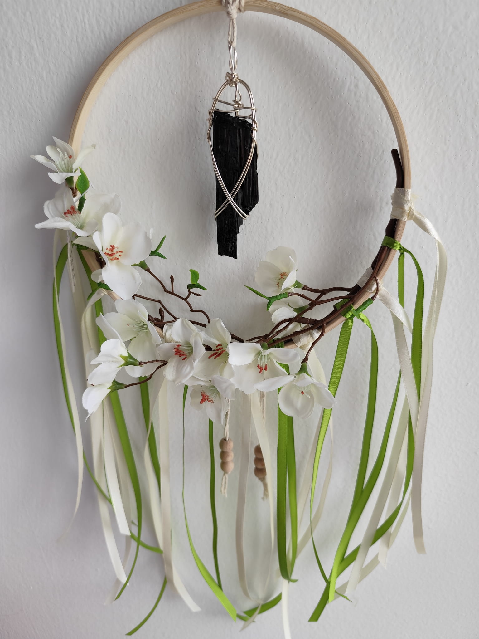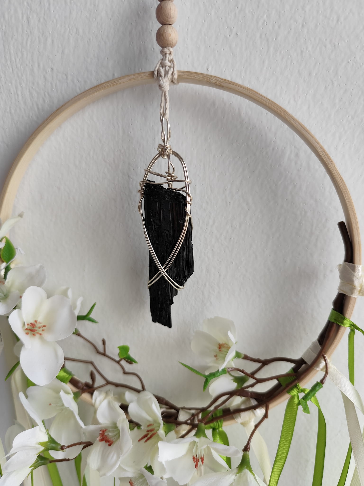 Ten ręcznie wykonany amulet ochronny to nie tylko piękna dekoracja, ale przede wszystkim energetyczna tarcza dla Twojego domu. Jego centralnym elementem jest czarny turmalin – jeden z najsilniejszych kamieni ochronnych w świecie minerałów.