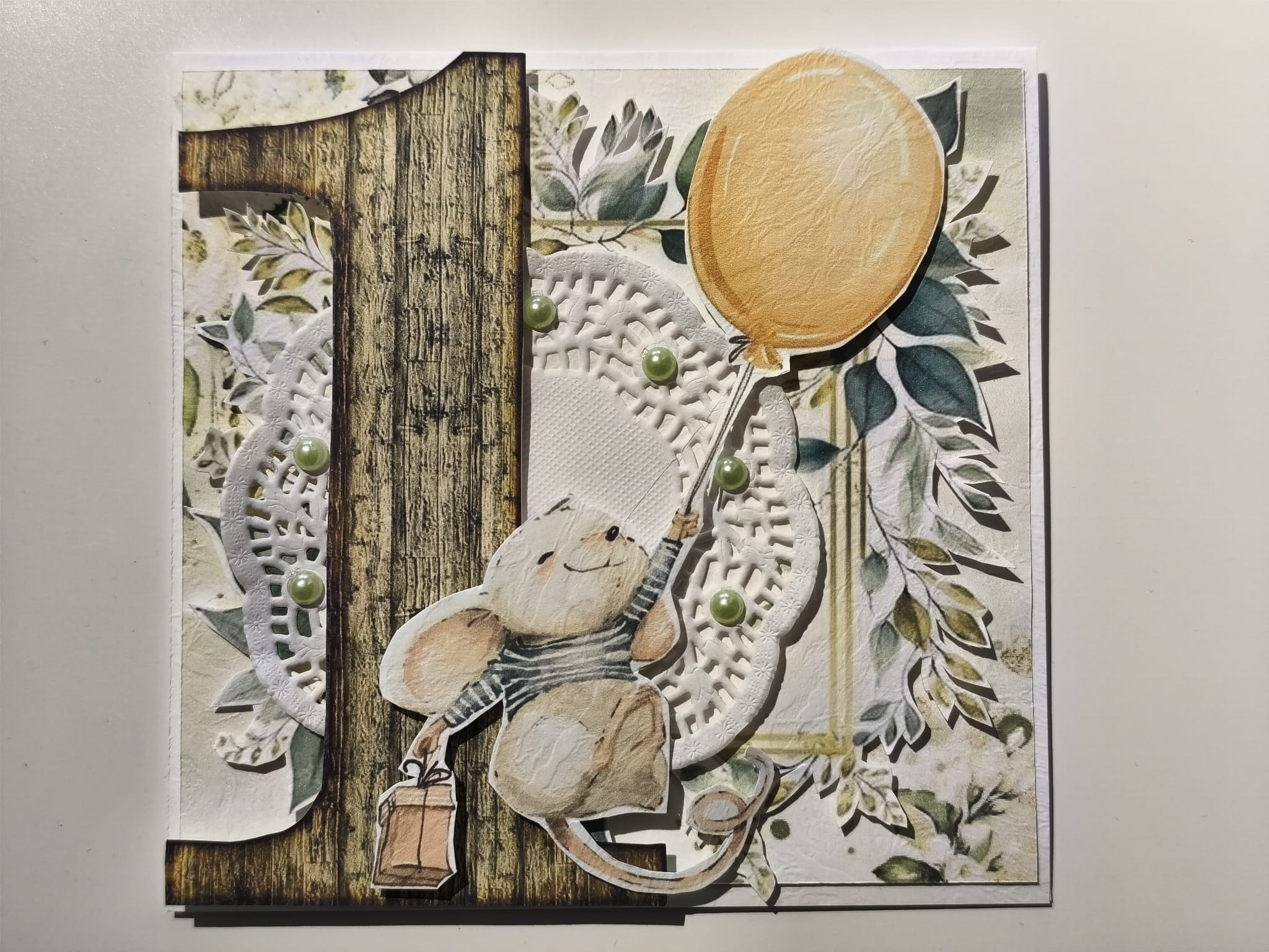 Wyjątkowa, ręcznie wykonana kartka z okazji pierwszego roczku dziecka to piękna pamiątka, która zachowa wspomnienia tego wyjątkowego dnia na długie lata. Każdy element został starannie wykonany ręcznie, dzięki czemu kartka zyskuje niepowtarzalny i uroczy charakter.