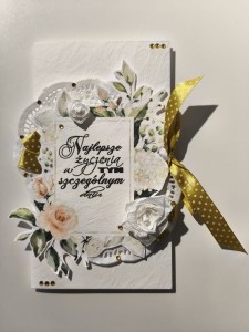 Kartka została wykonana z wysokiej jakości papierów ozdobnych i dekoracyjnych elementów.