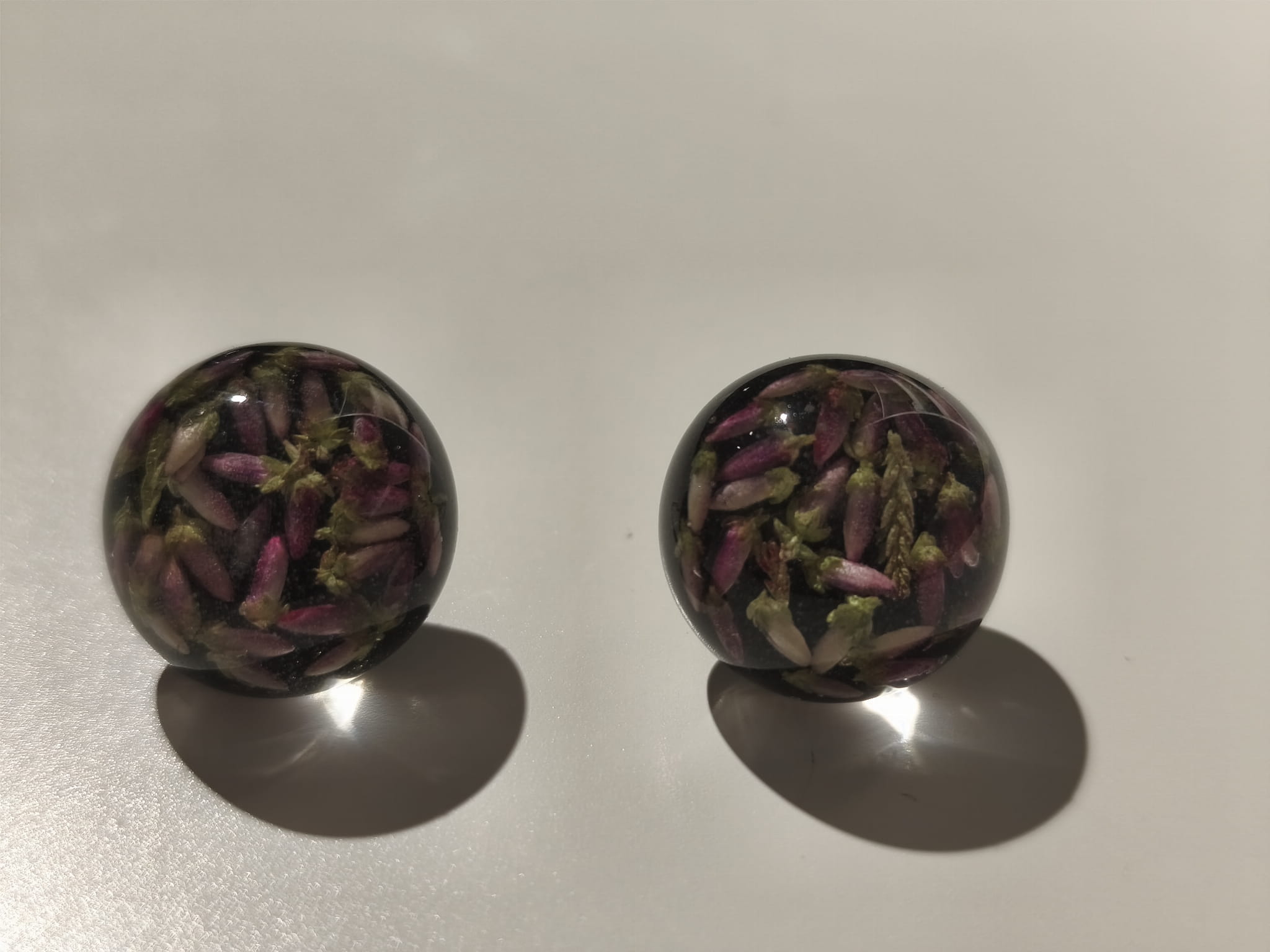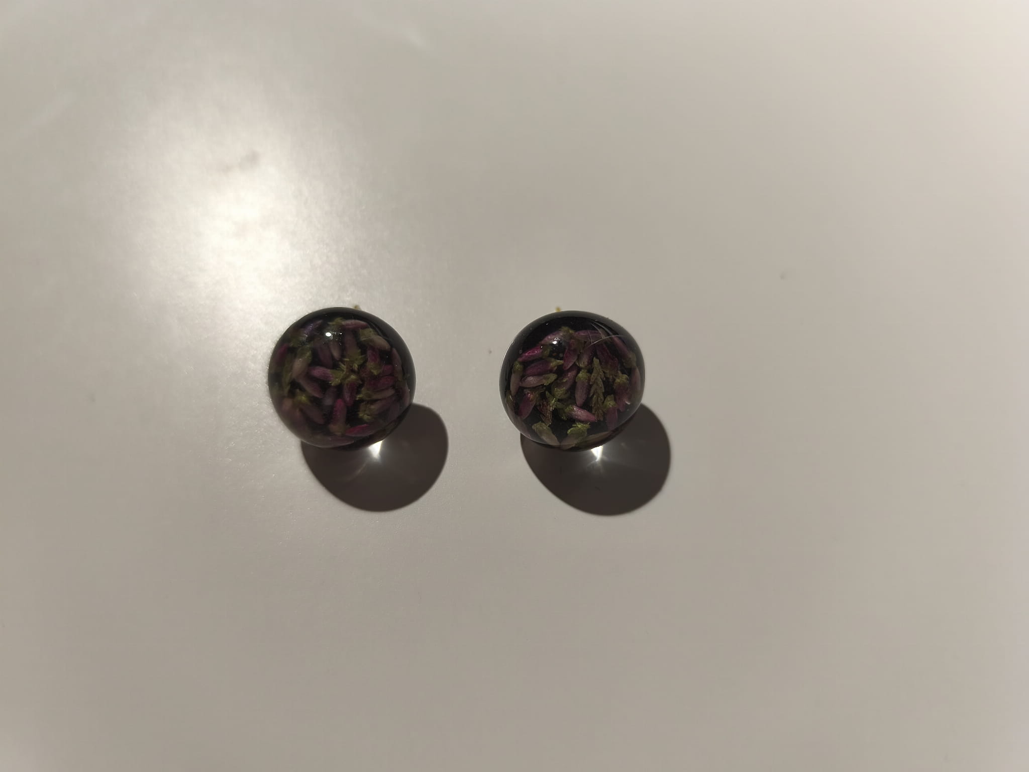 Kolczyki z ciemnej żywicy z nasionami wrzosu