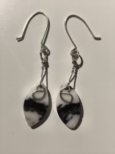 Kolczyki z jaspisu oplecione posrebrzanym drutem