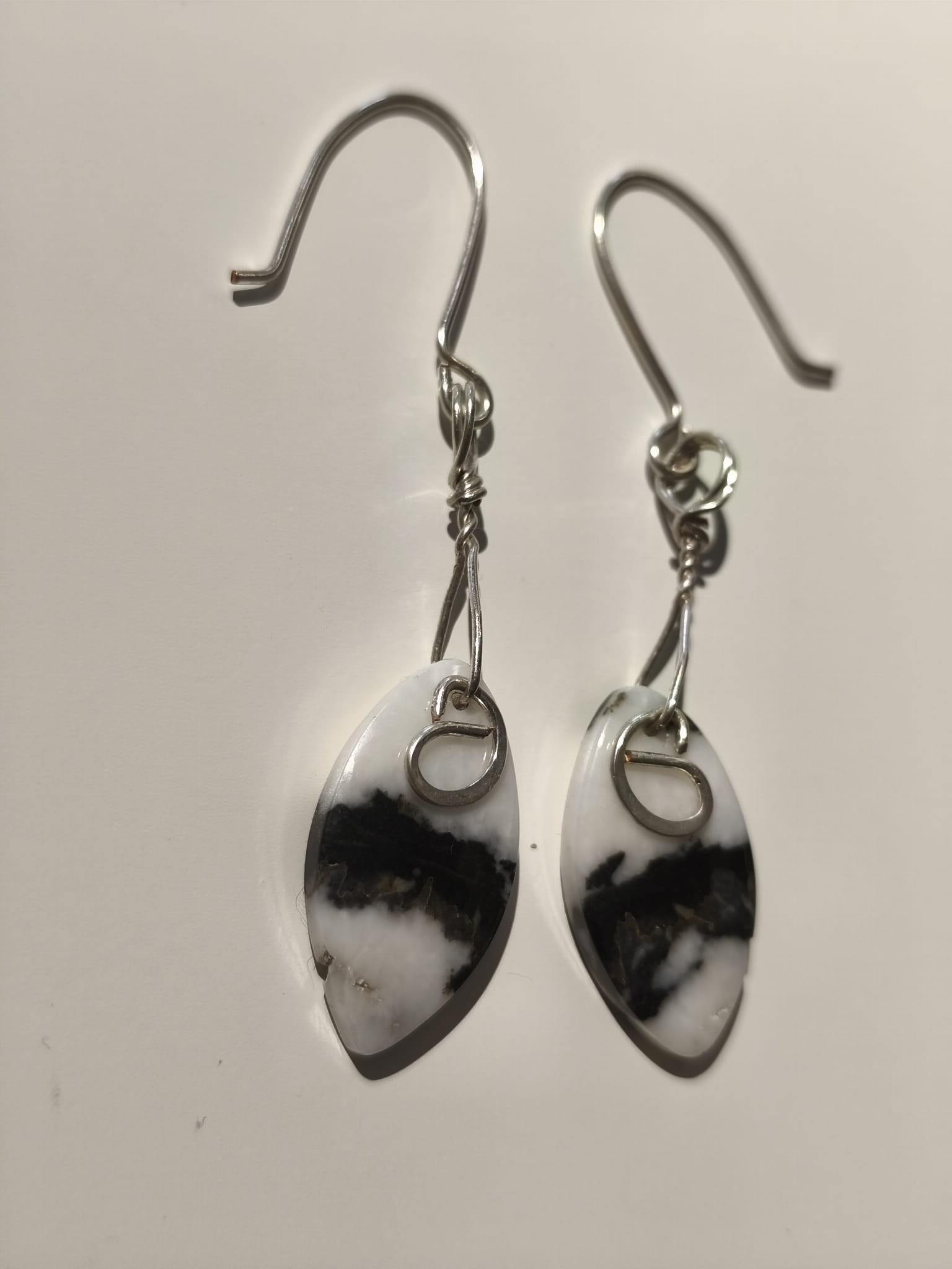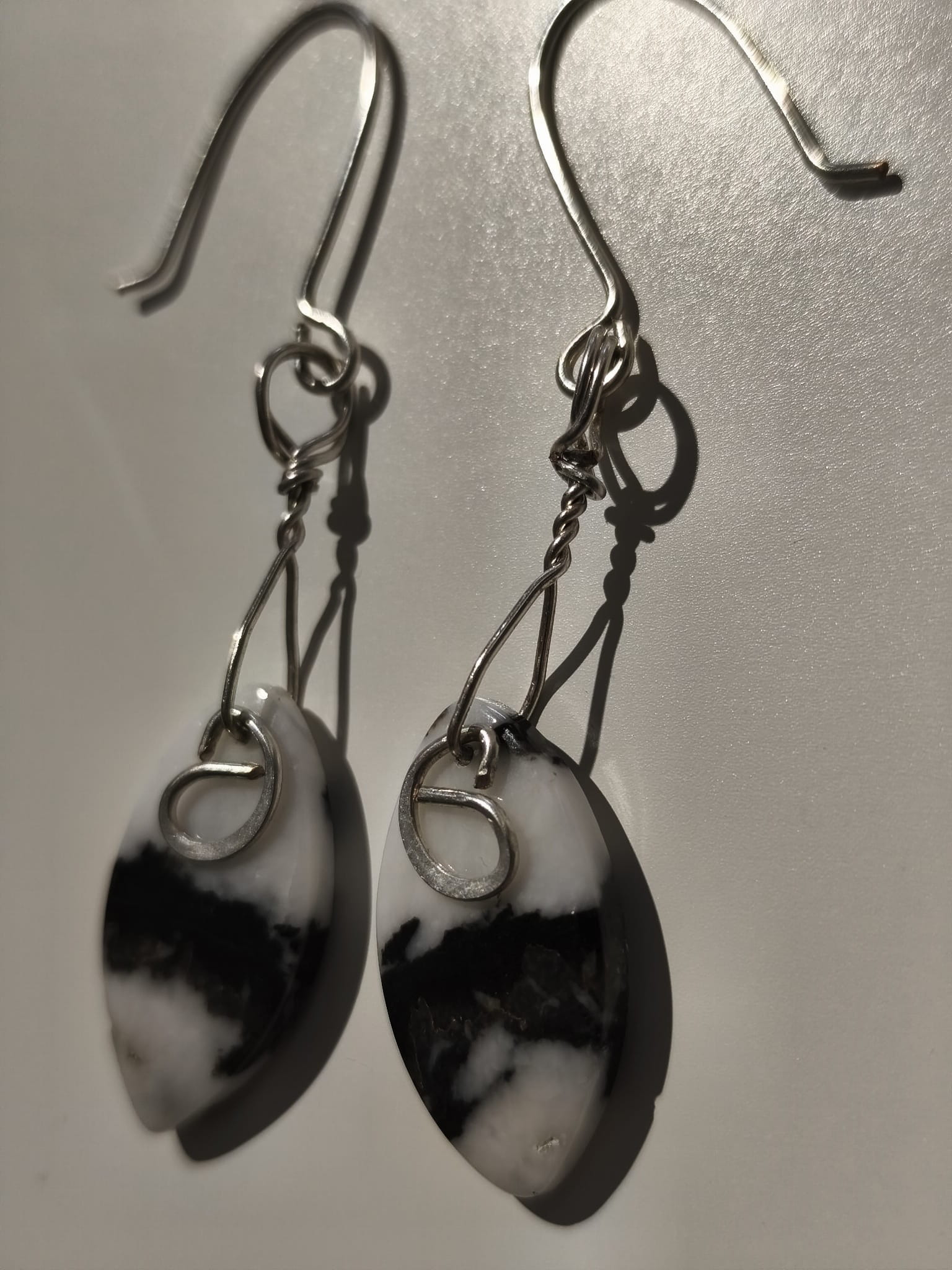 Centralnym elementem kolczyków jest jaspis. Dzięki naturalnym żyłkom i nieregularnym rysunkom jaspis przyciąga uwagę i doskonale komponuje się z metalicznym połyskiem drutu. Oplot wykonany z posrebrzanego drutu jubilerskiego nadaje całości lekkości, elegancji i wyrafinowanego stylu. Precyzyjne, ręczne oplatanie podkreśla kształt kamienia i dodaje kolczykom artystycznego charakteru.
