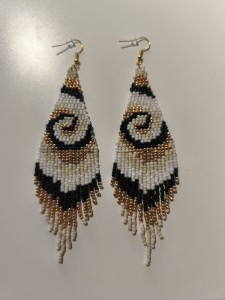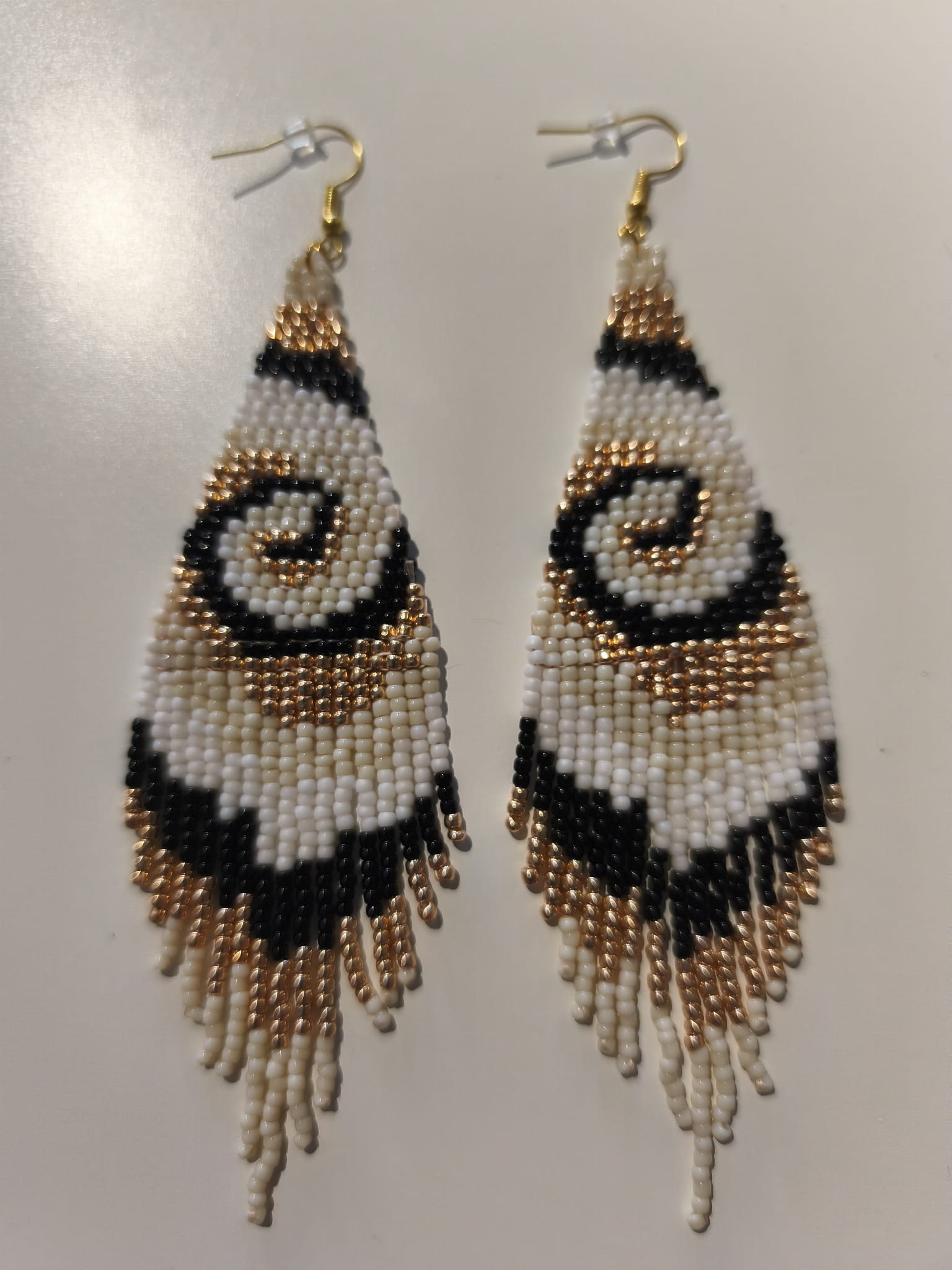 Kolczyki z koralików TOHO w kolorystyce bieli, złota i czerni