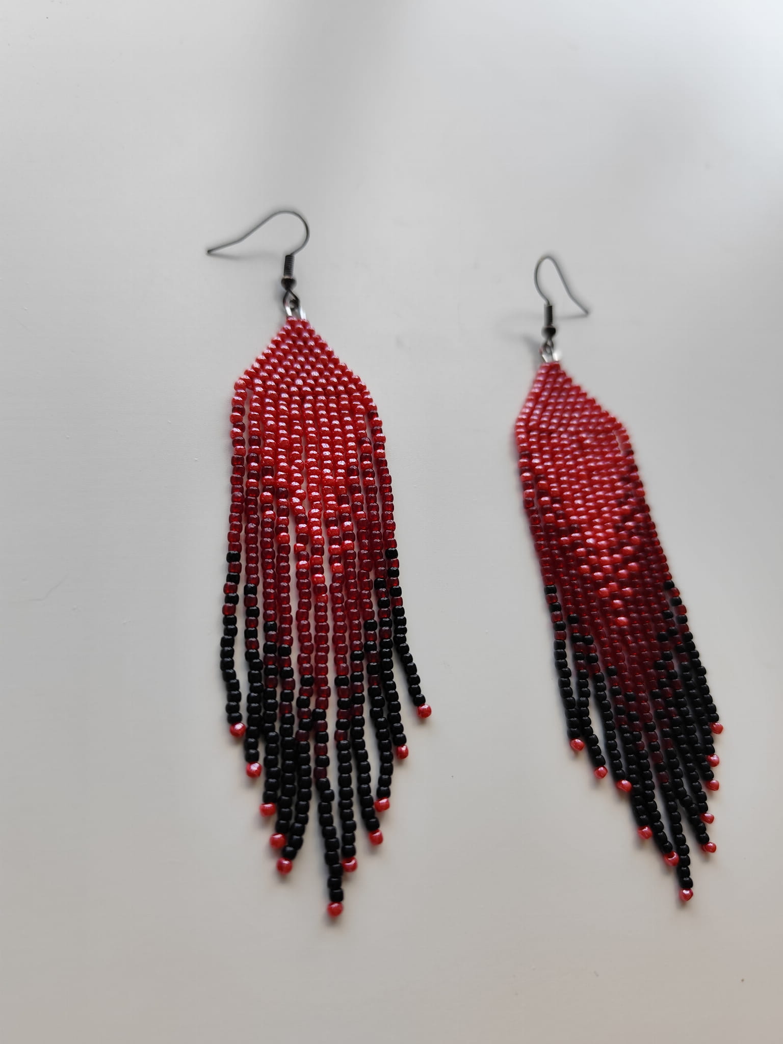 Kolczyki z koralików Toho w kolorystyce od czerwieni po czerń