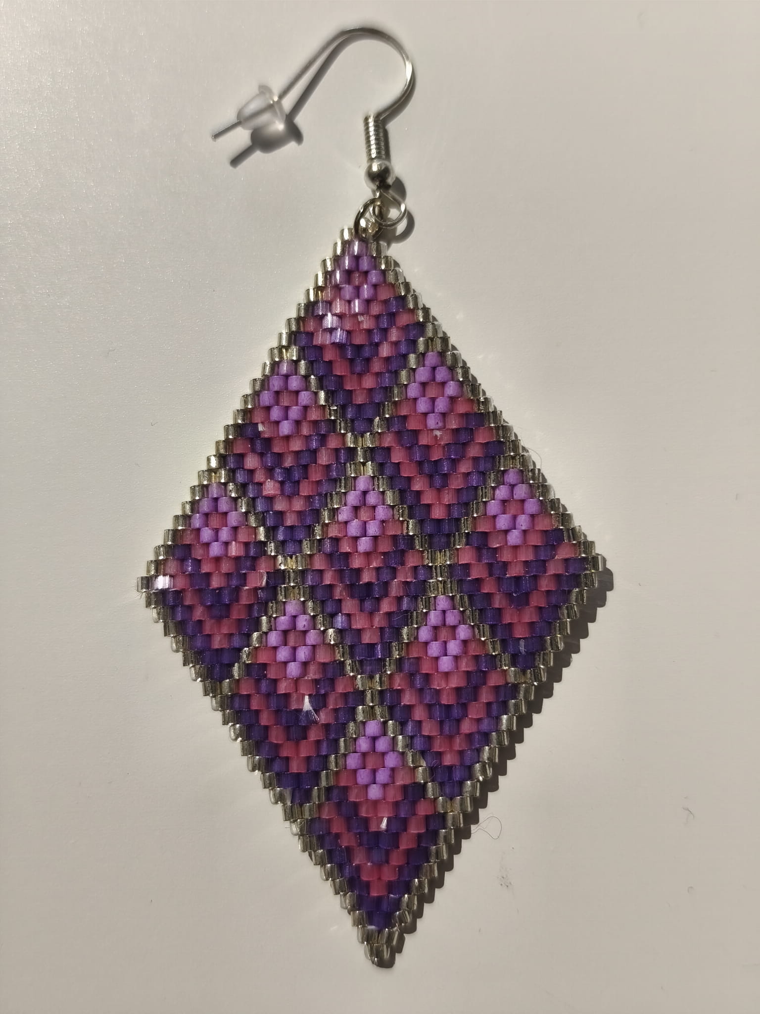 Te wyjątkowe kolczyki zostały wykonane ręcznie z drobnych, precyzyjnych koralików TOHO w odcieniach różu, fioletu i srebra. Połączenie tych barw tworzy delikatny, a jednocześnie elegancki efekt, który pięknie podkreśla kobiecość i subtelny blask każdej stylizacji. Idealne na co dzień, jak i na wyjątkowe okazje — dodadzą uroku zarówno casualowym, jak i wieczorowym zestawom. Lekkie i wygodne w noszeniu, stanowią idealny wybór dla osób ceniących rękodzieło, styl i oryginalność. Każda para jest unikatowa, stworzona z dbałością o każdy szczegół.