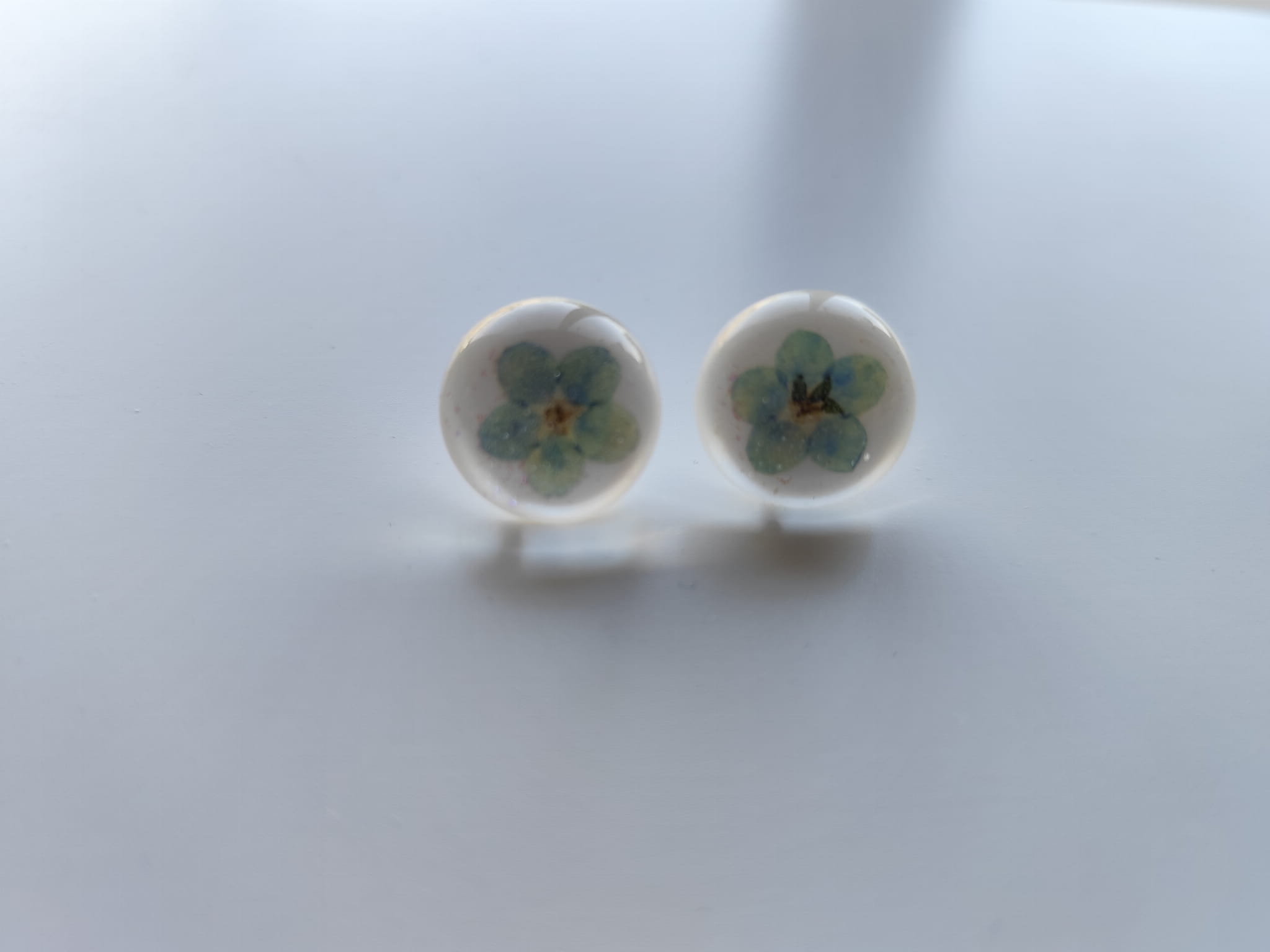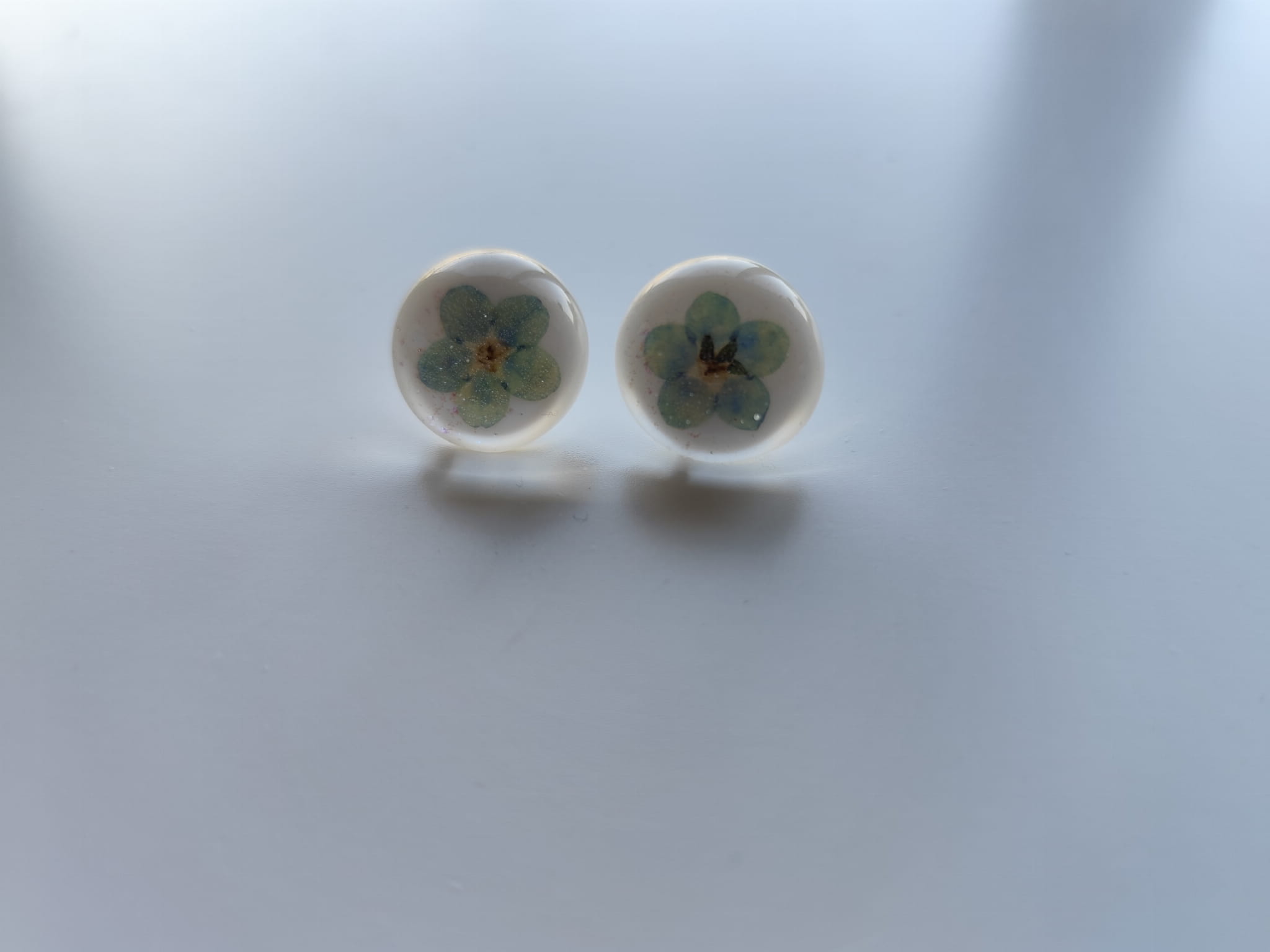 Okrągłe kolczyki z białej żywicy z niezapominajką