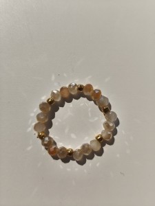 Pierścionek z beżowych i brzoskwiniowych kamieni oraz złotych koralików TOHO