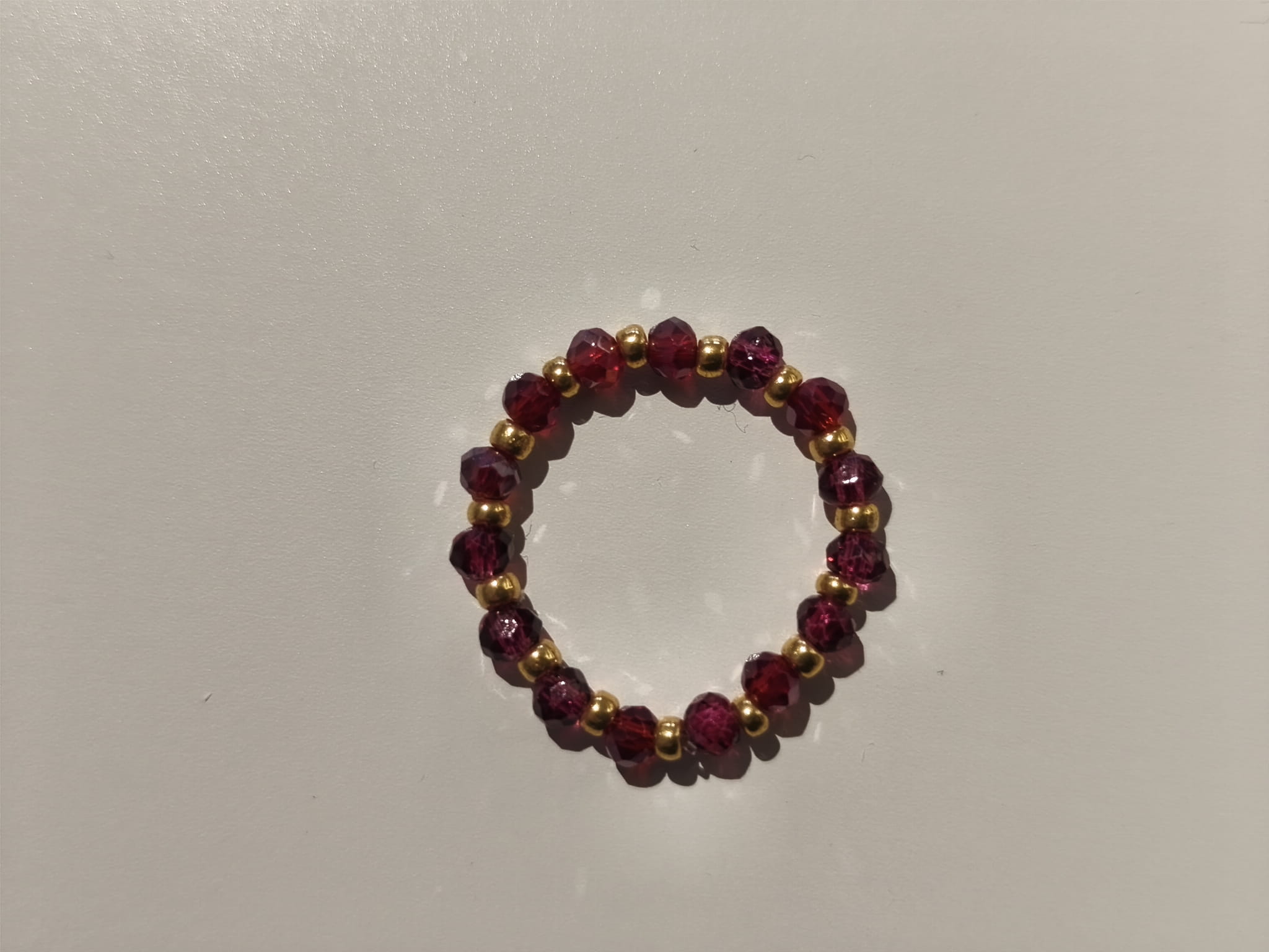Pierścionek z czerwonych kamieni i złotych koralików TOHO
