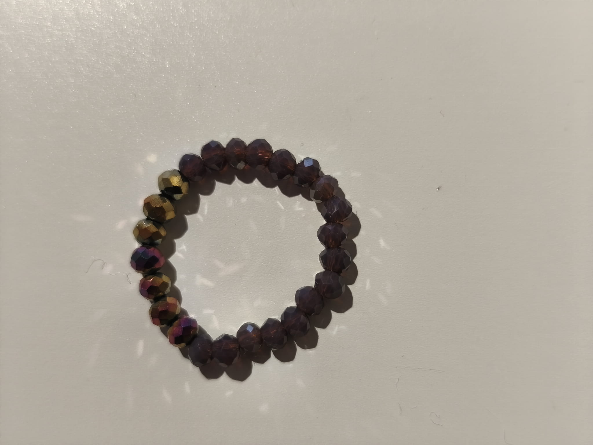 Różne granatowe i fioletowo-złote kamienie naturalne na elastycznej gumce jubilerskiej.