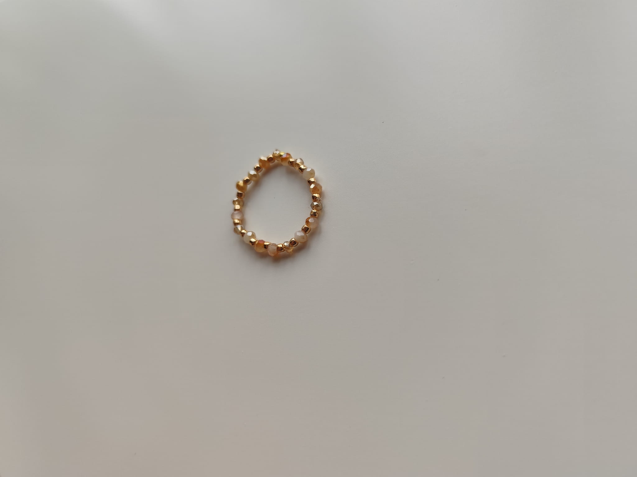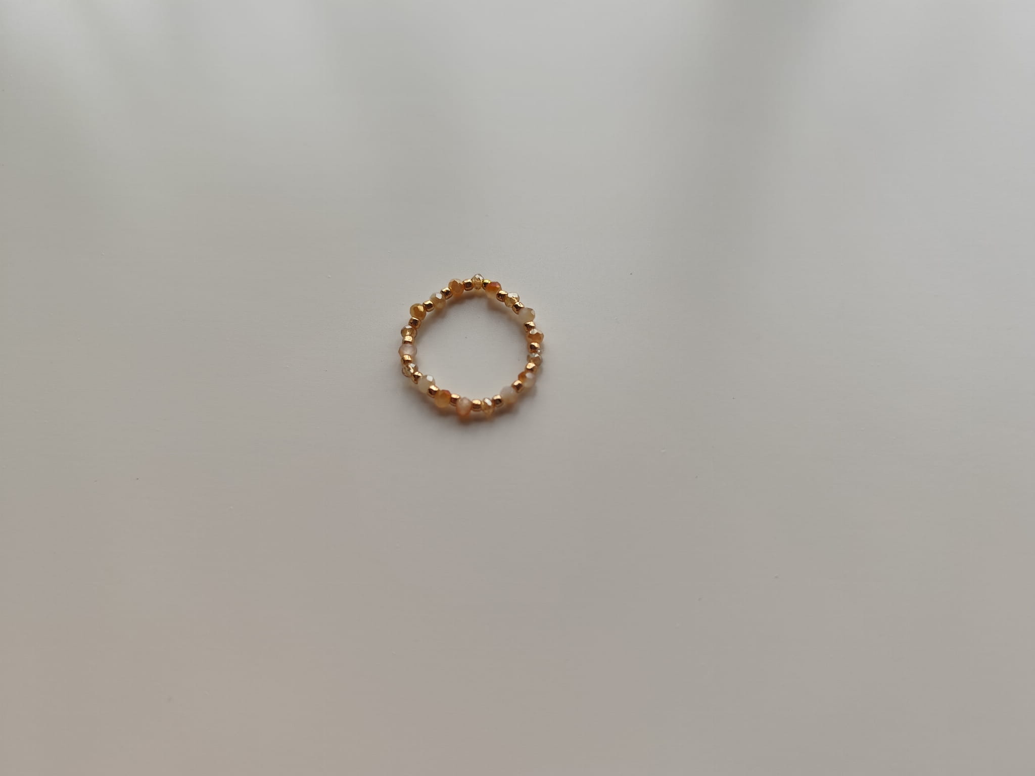 Pierścionek z kamieni w odcieniach beżu i pomarańczy oraz złotych koralików TOHO