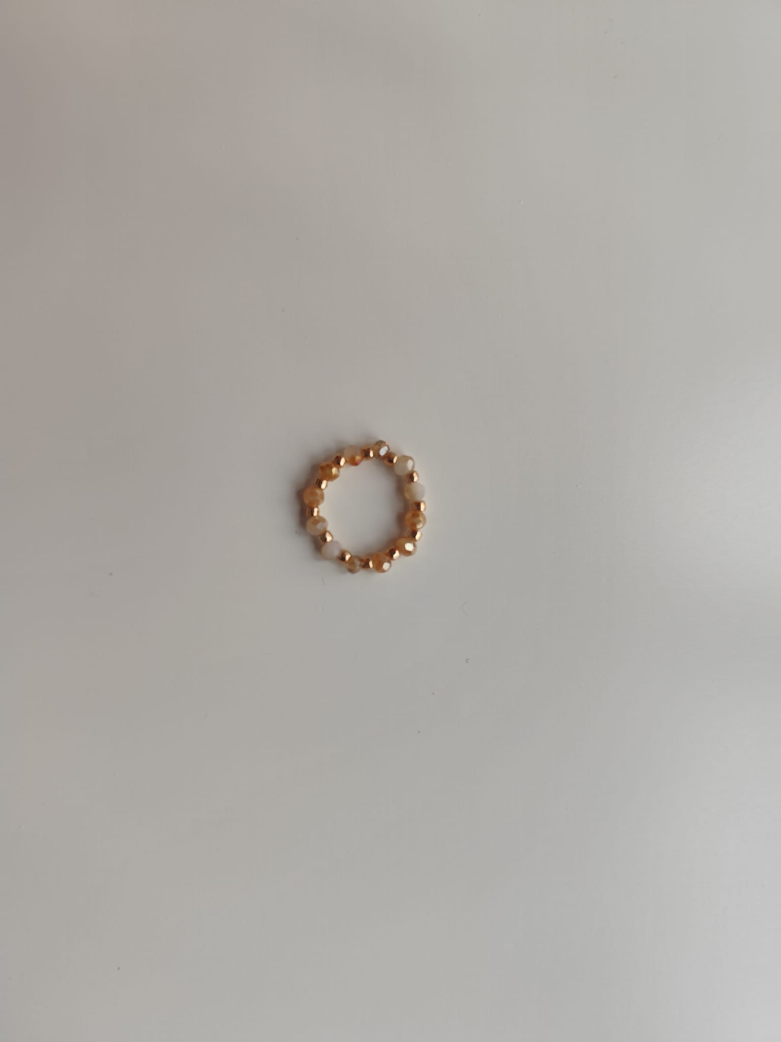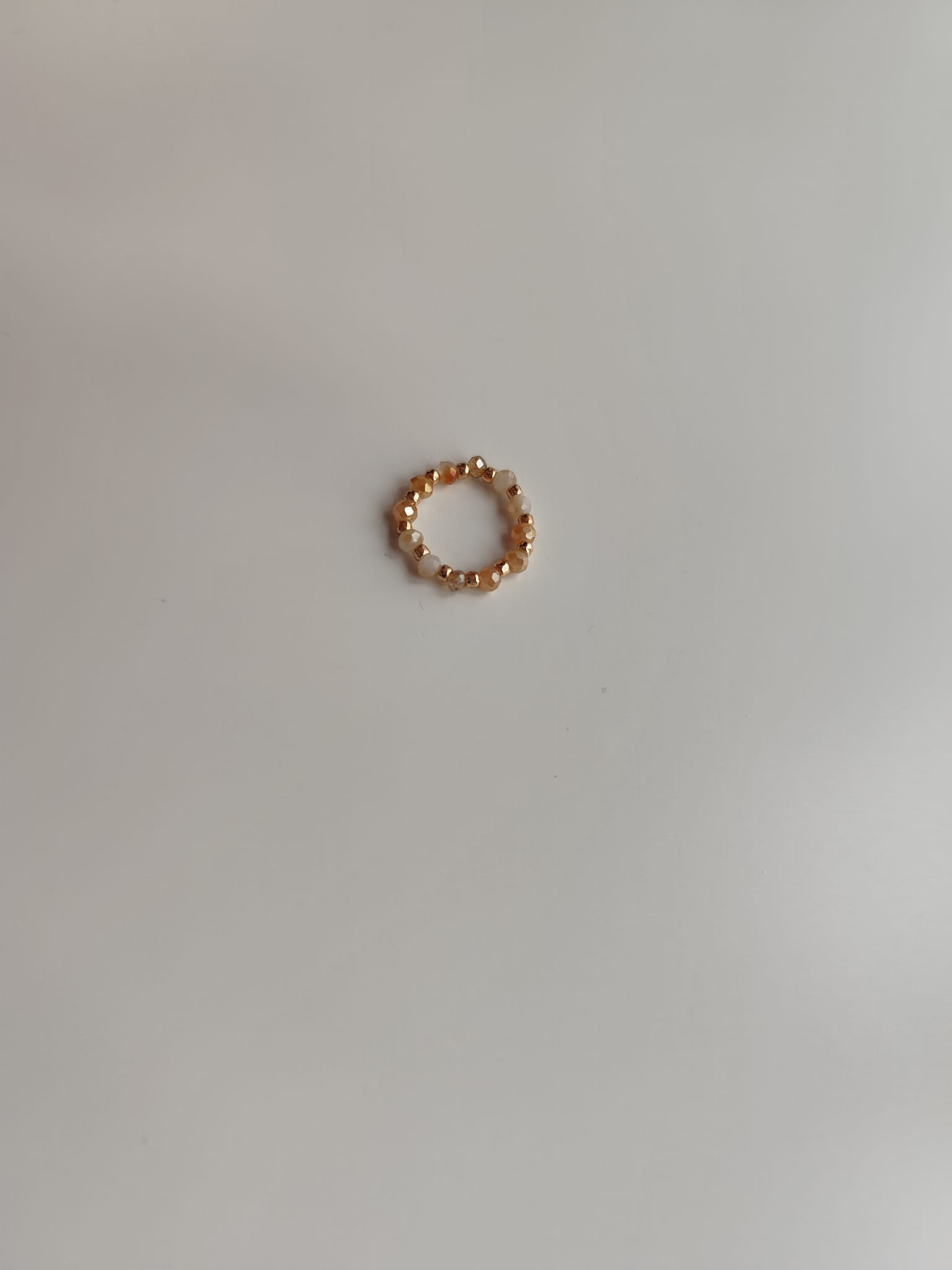 Pierścionek z kamieni w odcieniach bieli i pomarańczy oraz złotych koralików TOHO