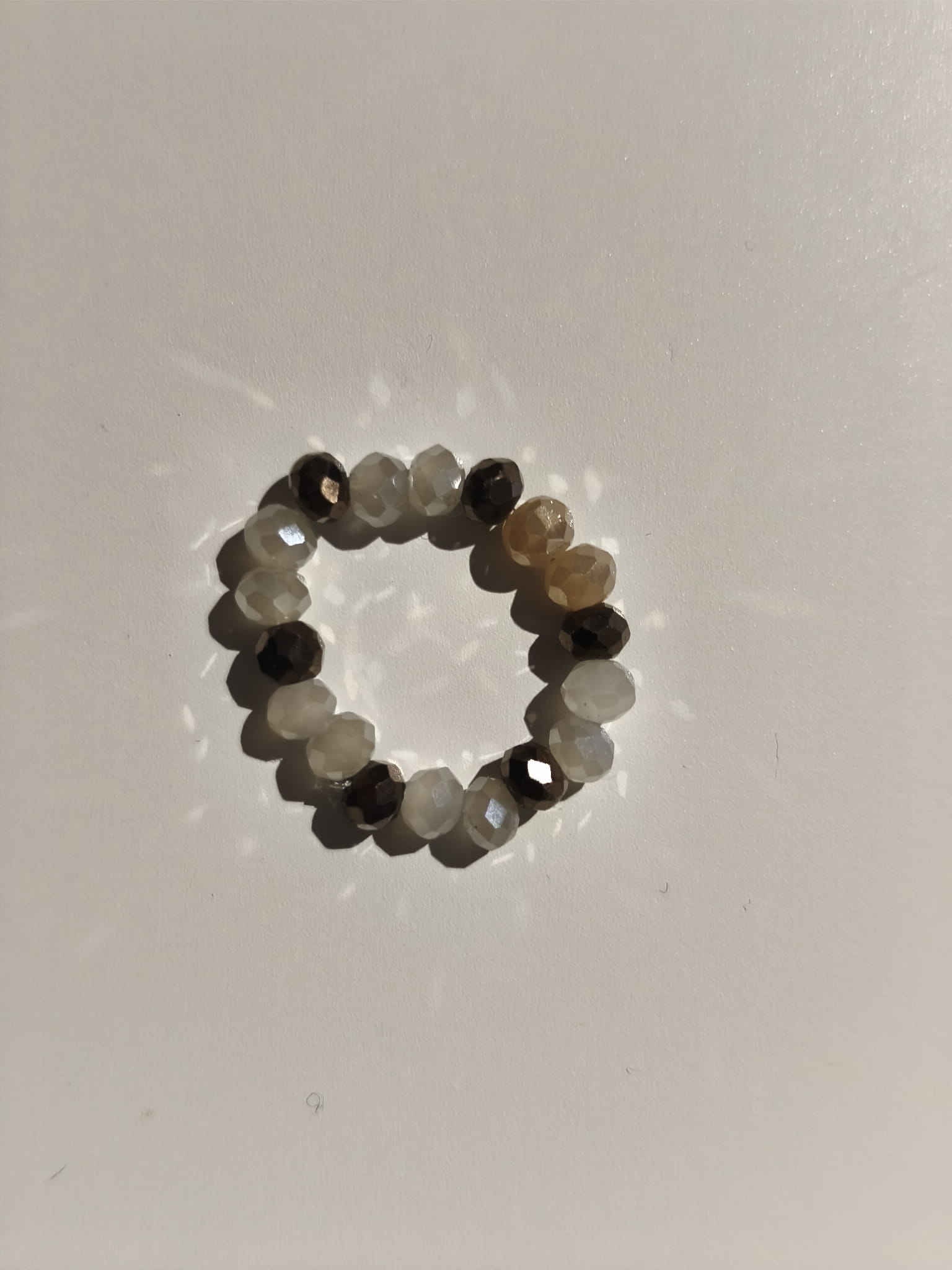 Pierścionek z mlecznych, beżowych i brązowych kamieni