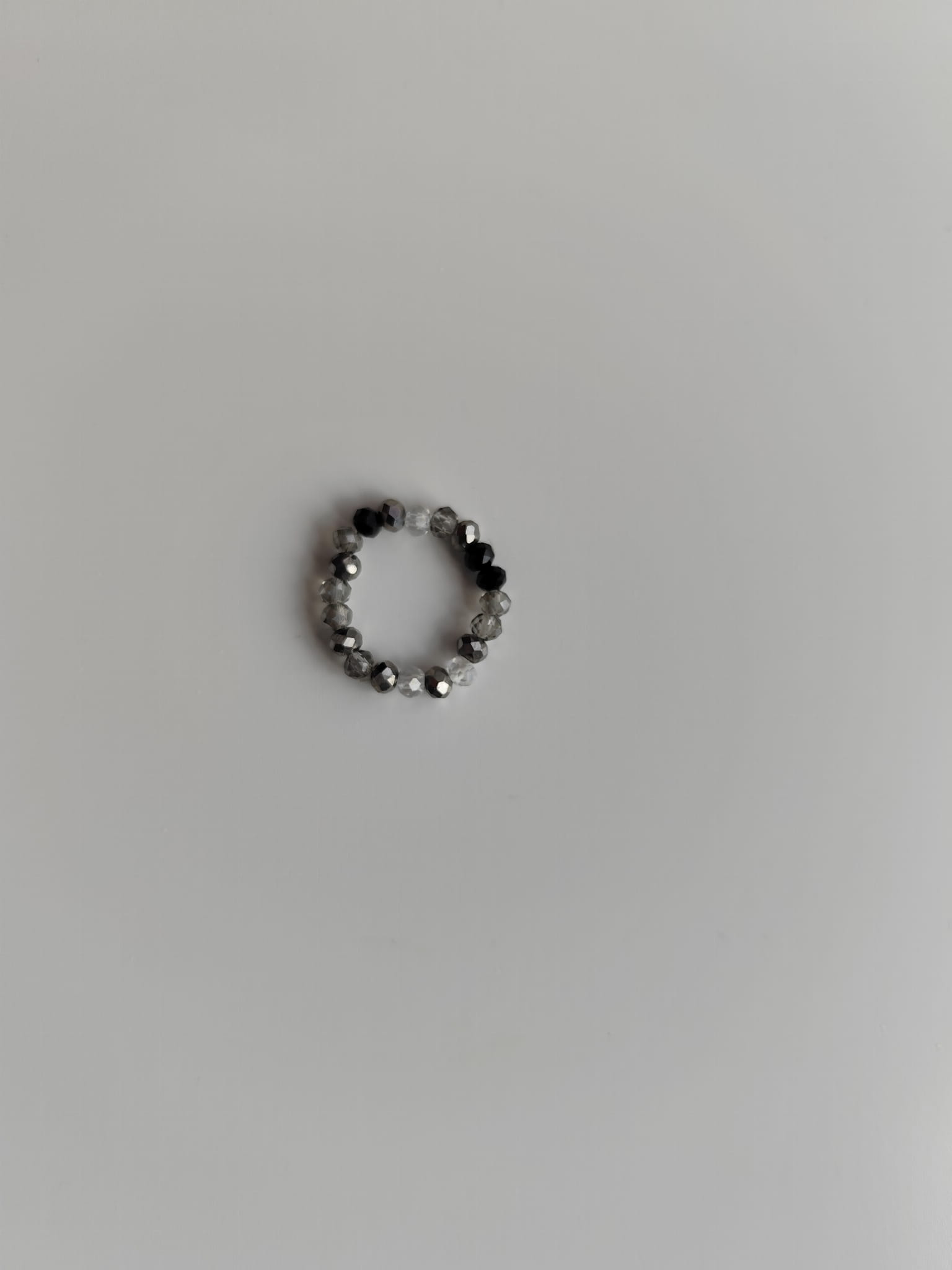Pierścionek z przezroczystych, srebrnych i czarnych kamieni