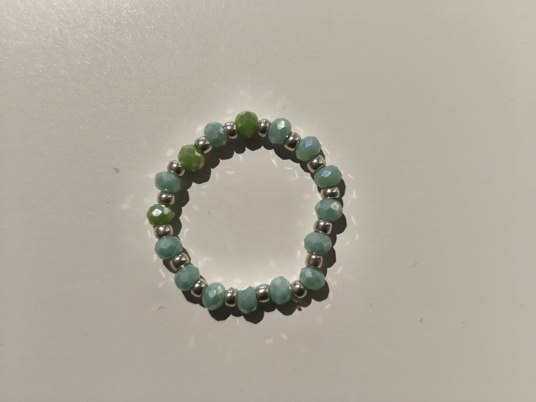 Pierścionek z seledynowych kamieni i srebrnych koralikami TOHO
