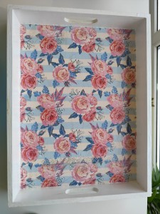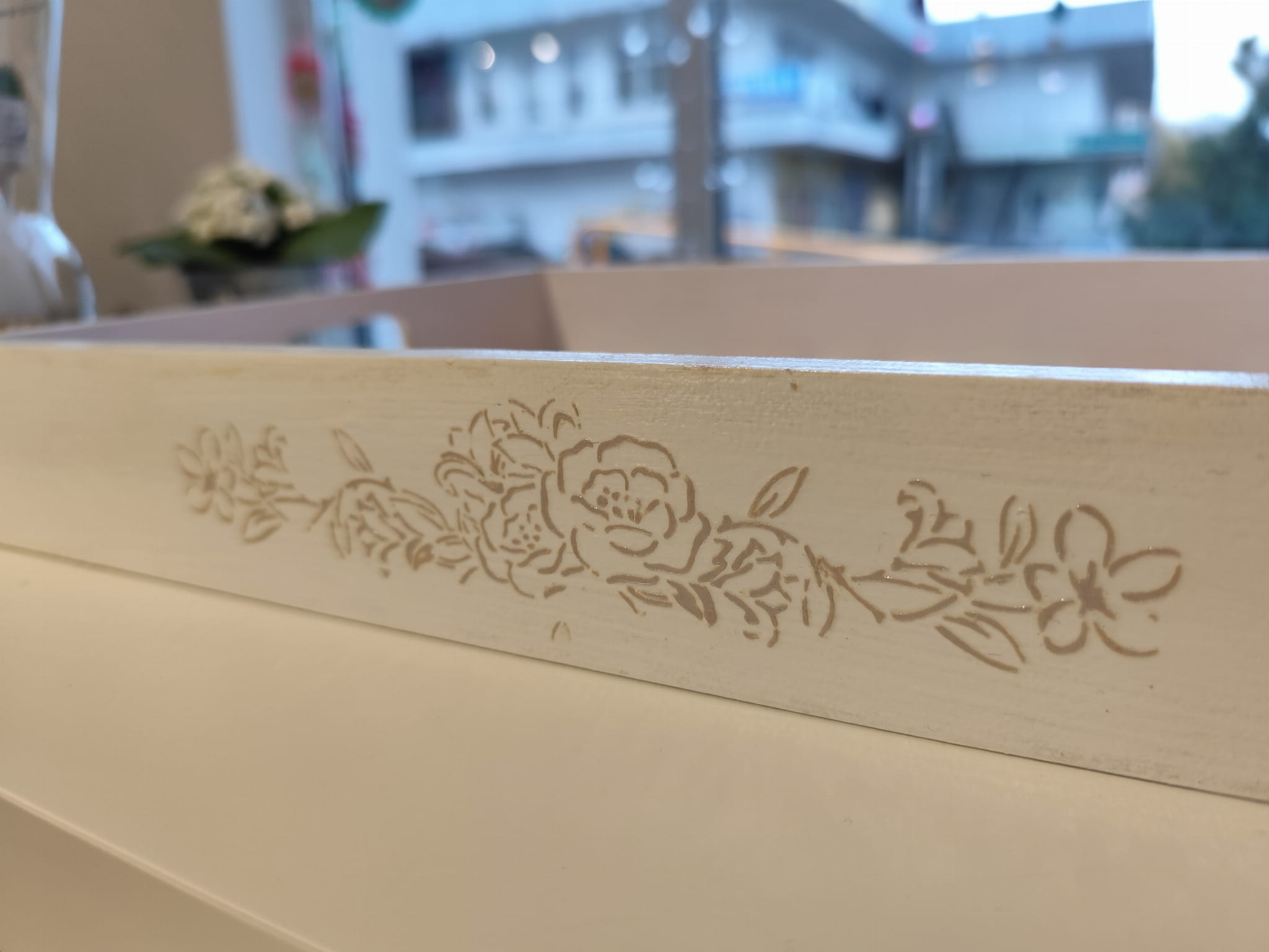 Ręcznie dekorowana taca z drewna z motywem kwiatowym