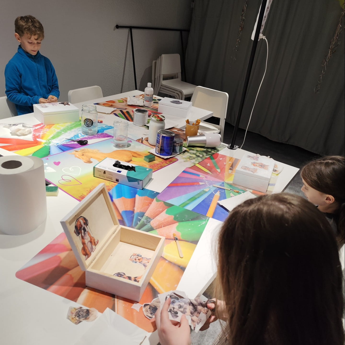 U nas można indywidualnie umówić się co będziemy robić. Pudełka na skarby, wymarzone malunki, lepienie z gliny czy wykonanie innej pracy. Jesteśmy otwarci na propozycję.