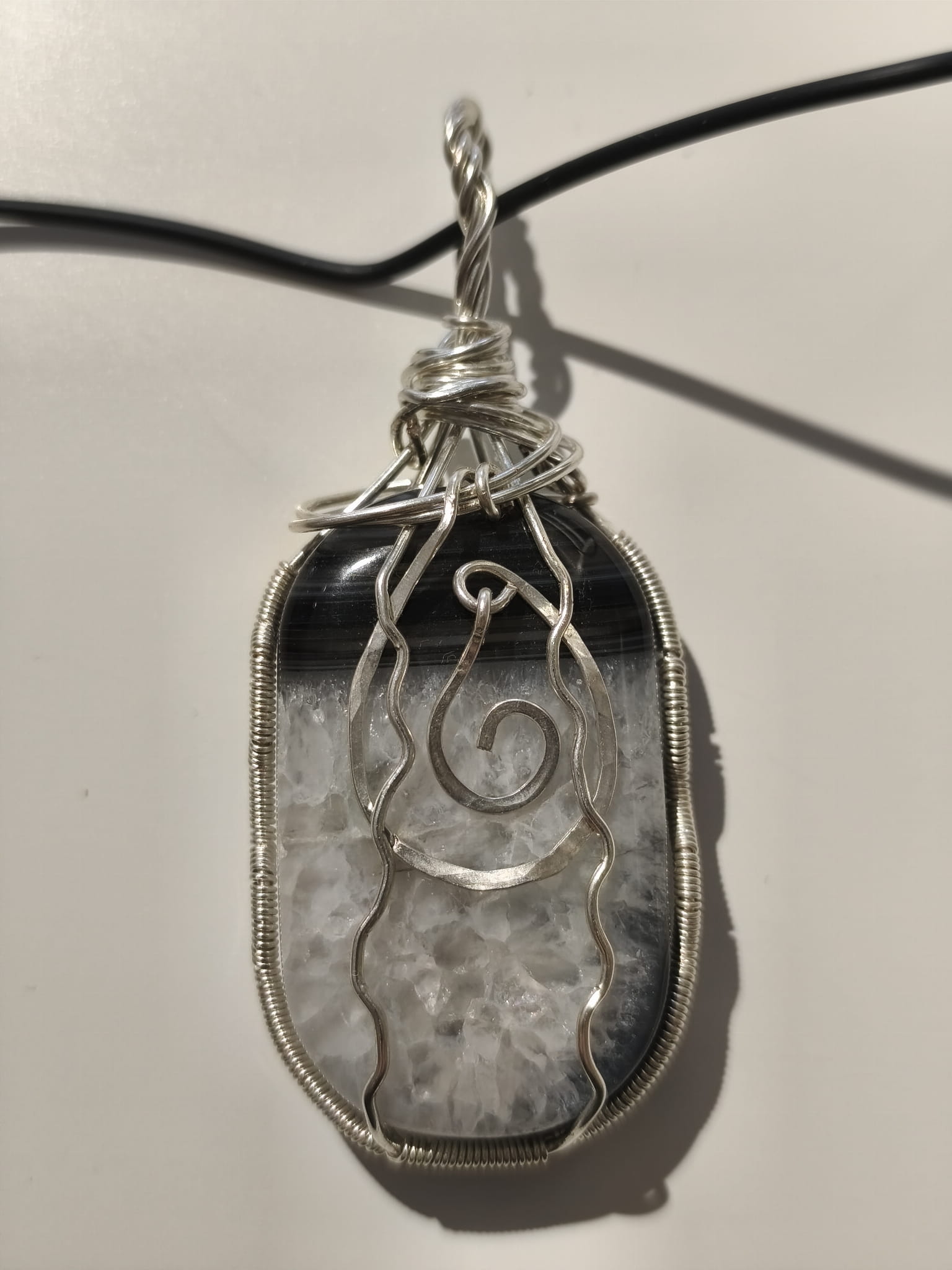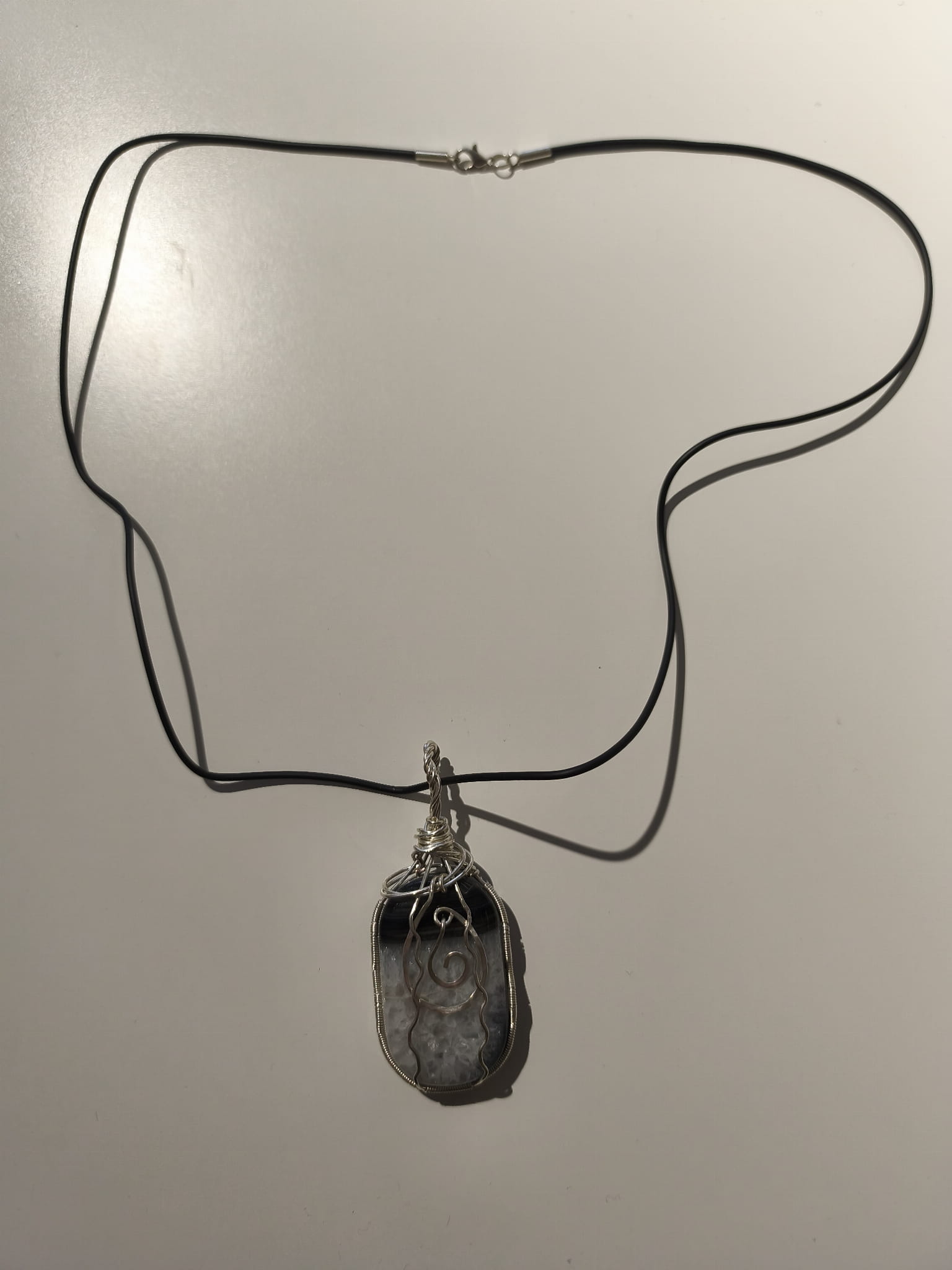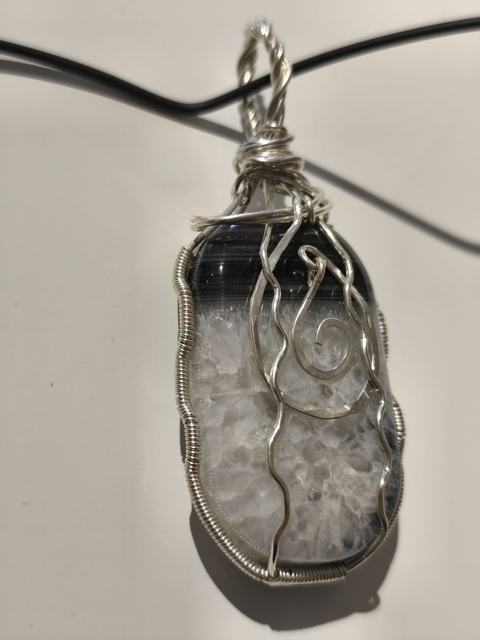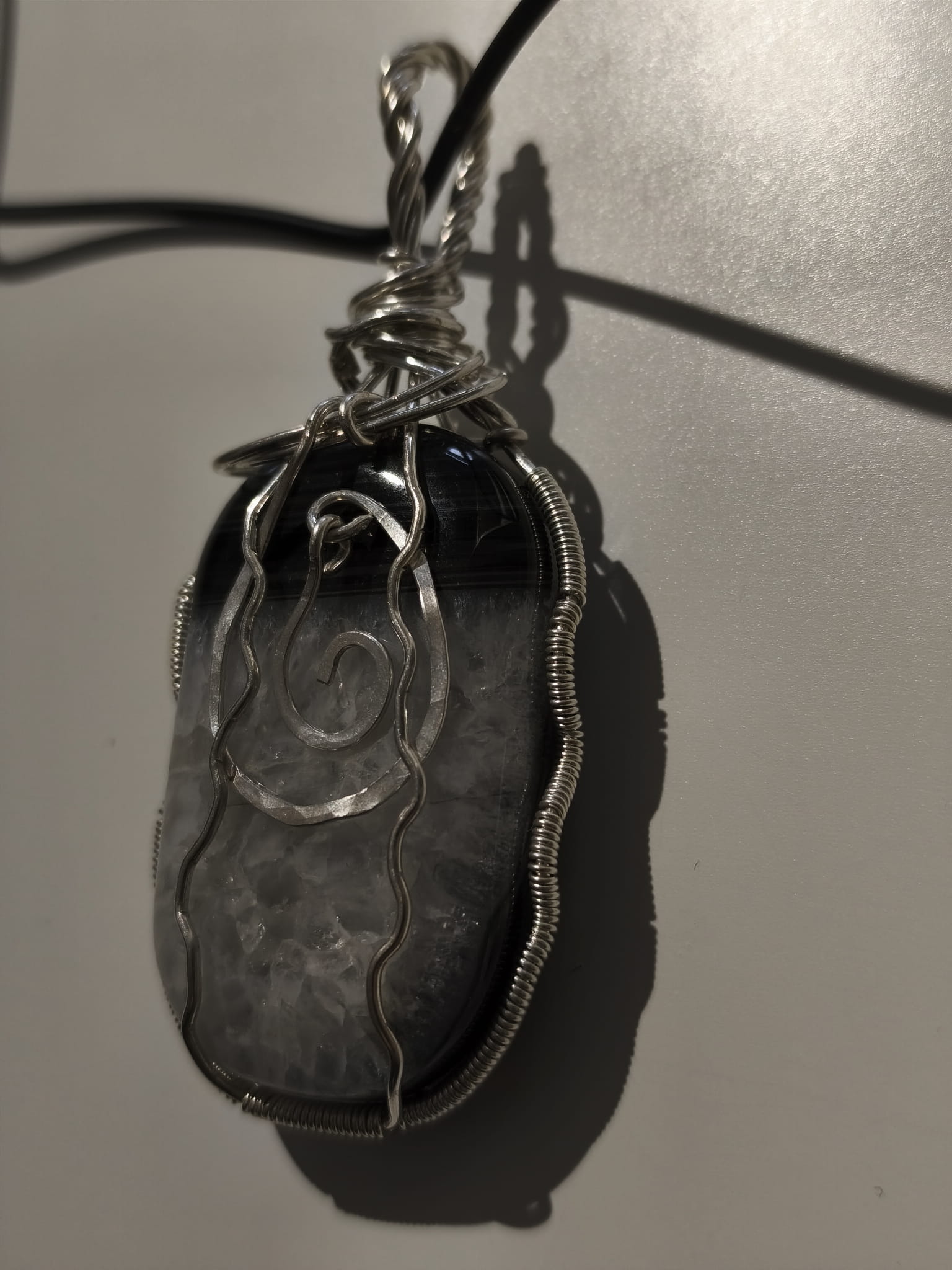 Wisiorek z Agatu oplecionego posrebrzanym drutem