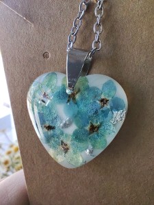 Zawieszka serce z białej żywicy z niezapominajkami