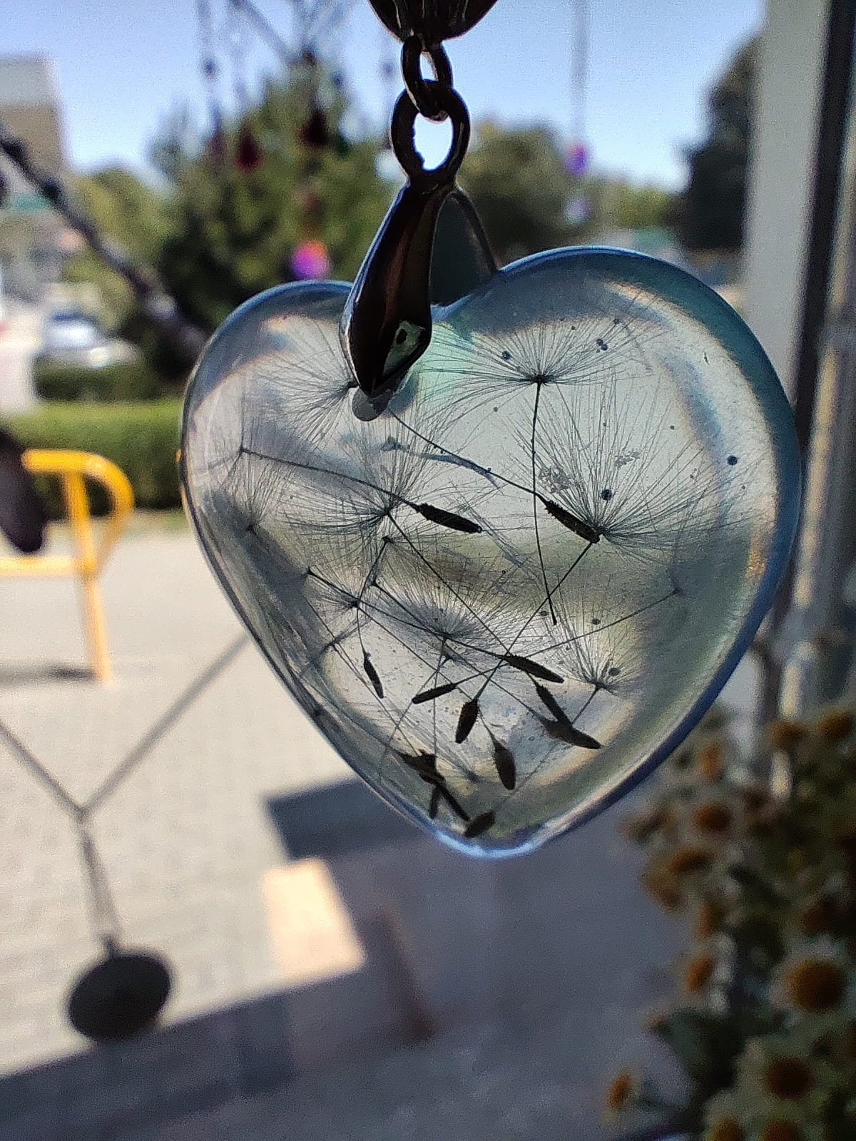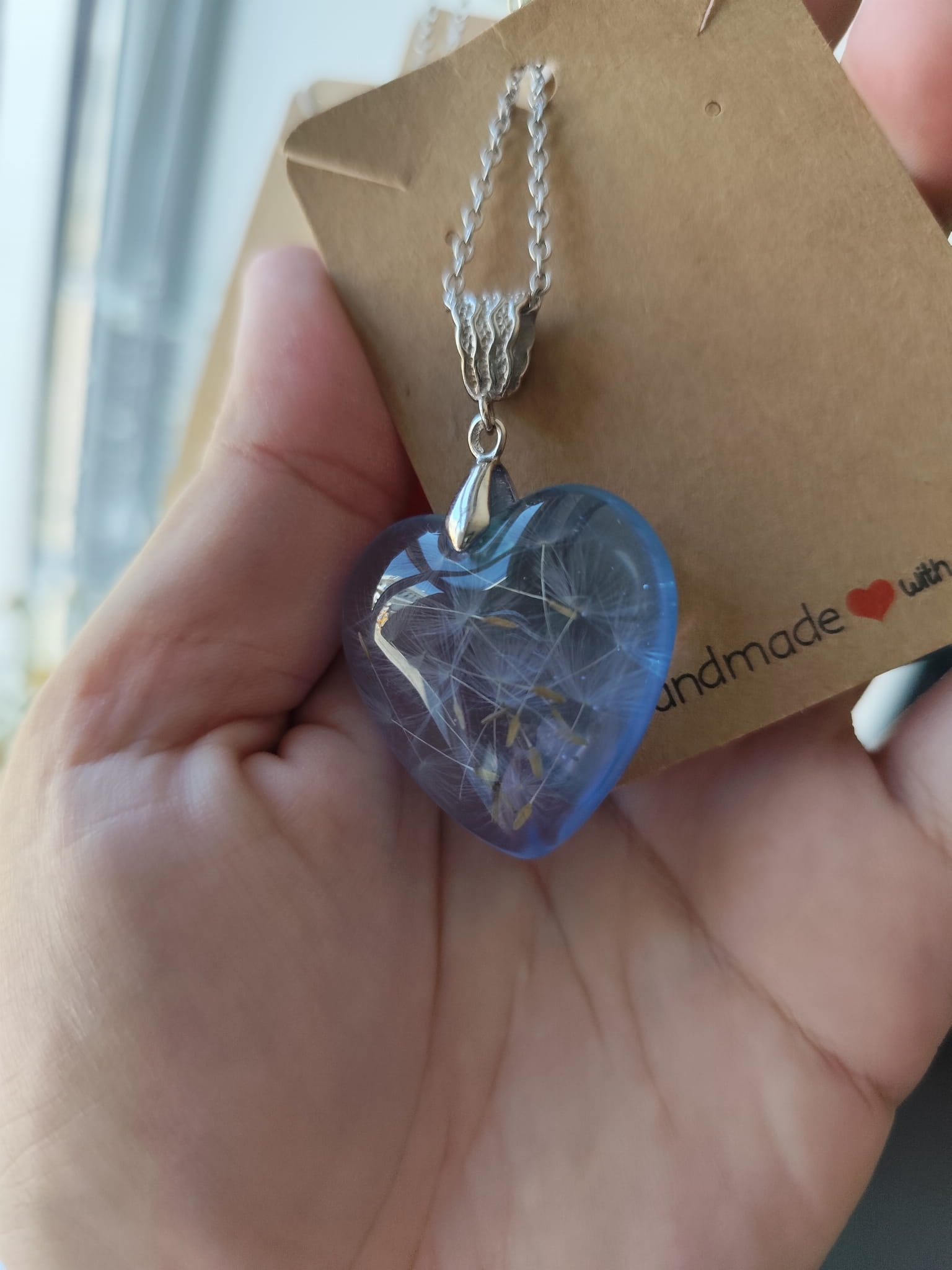 Zawieszka serce z niebieskiej żywicy z nasionami dmuchawca