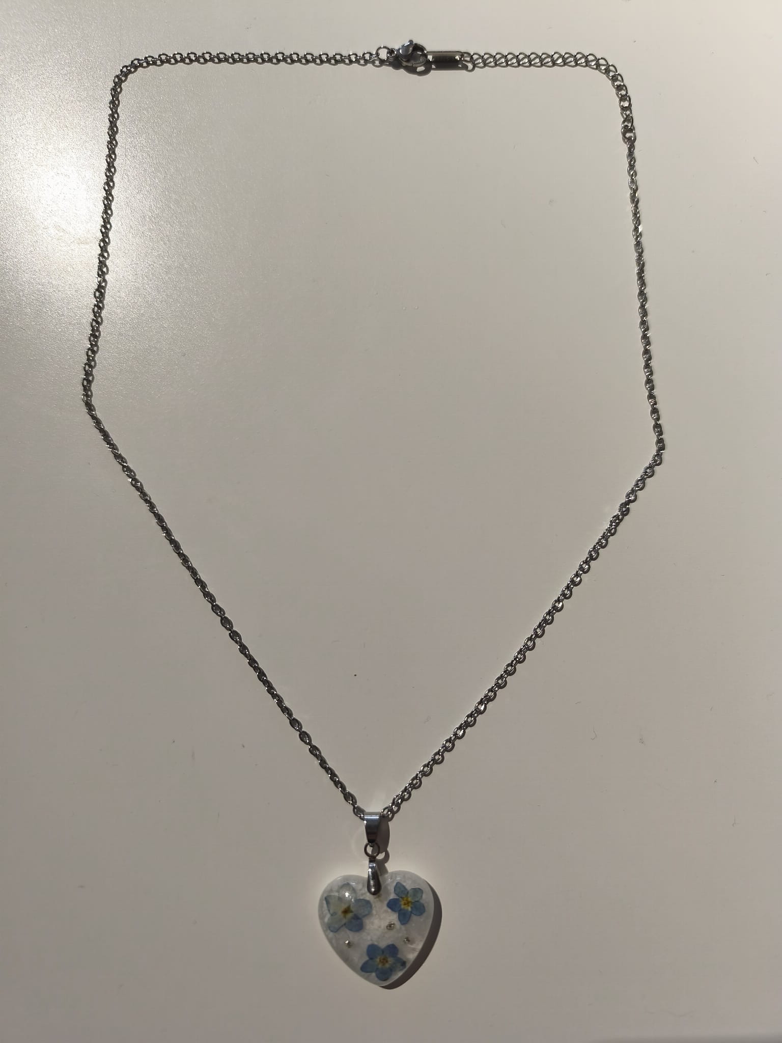 Zawieszka w kształcie serca z suszonymi niezapominajkami zatopionymi w jasnej żywicy to wyjątkowy, ręcznie wykonany dodatek, który łączy naturalne piękno kwiatów z elegancją żywicy. Każda zawieszka jest unikalna – delikatne, niebieskie kwiatki zachowane w swojej naturalnej formie tworzą subtelny i romantyczny efekt. Idealna jako prezent lub osobisty talizman, który przypomina o wyjątkowych chwilach i bliskich osobach. Lekka, trwała i przyciągająca wzrok.