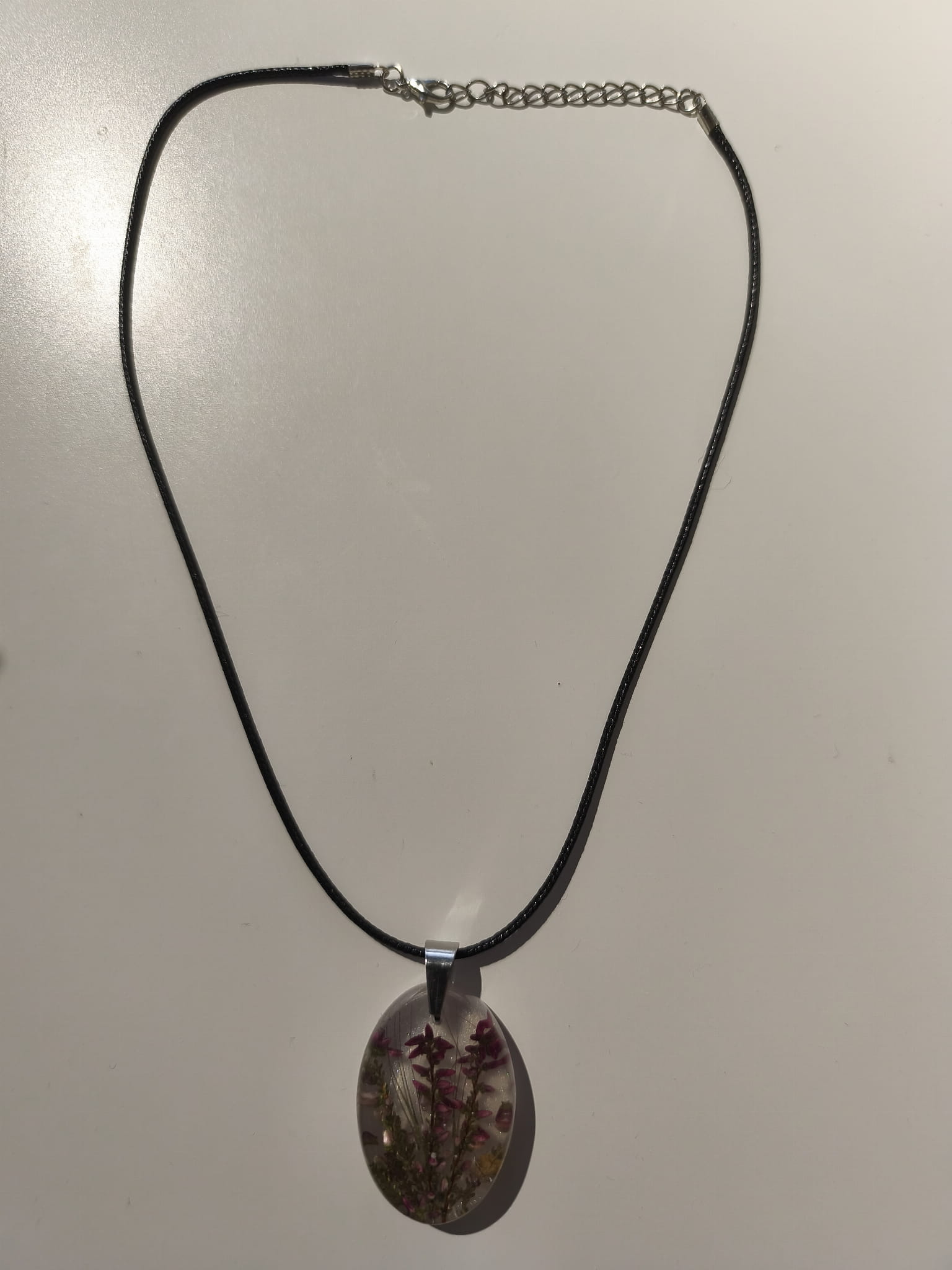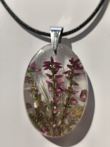 Zawieszka z kwiatami wrzosu zatopionymi w jasnej żywicy