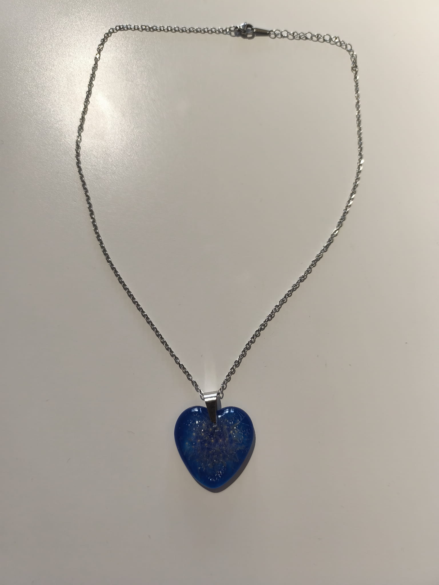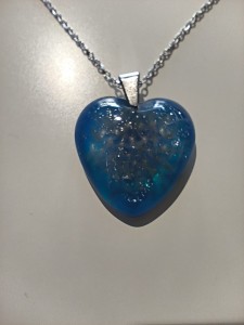 Zawieszka z niebieskiej żywicy z nasionami dmuchawca i kruszonym szkłem